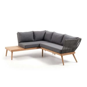 Lounge Sofaecke in Grau Webstoff Eukalyptusholz