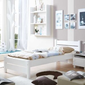 – Massivholzbett Weiß – Jugendbett Kiefer Massivholz – Bettgestell Modern – Bett Höhe: 76 – Einzelbett Tiefe: 212 – Holzbett Bettseitenhöhe [Einstieg]: 40 – Bettrahmen Ohne Beleuchtung – Naturholzbetten Zerlegt, zum leichten Selbstaufbau (Montageanleitung liegt bei) – Vollholzbett Lieferung ohne Matratze – Echtholzbett Lieferung ohne Lattenrost – Massiv vollholz betten Vertiefung für Lattenrahmen (cm): 12 – Massivbett Fußende-Höhe (cm): 43 – Naturholzbetten massiv Kopfende-Höhe (cm): 73 – Jugendzimmer bett Bodenabstand zum Seitenteil (cm): 26 – Kinder jugendbett Füße: 4-Fuß Gestell aus Holz – Massive betten holz Massivholz Oberfläche und Lackiert – Singlebett Belastbar 100-119 KG Varianten – Holzbettgestell 001: Breite: 100 / Liegemaße: 90×200 – Massivholzbettgestell 002: Breite: 110 / Liegemaße: 100x200Informationen zur Lieferung:Die Zustellung dieses Produktes erfolgt per DPD. Sollten Sie bei der Erstzustellung nicht angetroffen werden, hinterlässt der Zusteller in Ihrem Briefkasten eine Benachrichtigungskarte mit dem zweiten Liefertermin, den Lieferdaten sowie Kontaktinformationen. Somit haben Sie die Möglichkeit, sich bezüglich des Empfangs Ihrer Ware mit DPD in Verbindung zu setzen. Die Zustellung erfolgt maximal 3x, sofern die beiden ersten Termine erfolglos bleiben sollten. Die Auslieferung erfolgt von Montags bis Freitags. Eine Zustellung an Sonn- und Feiertagen ist nicht möglich.
