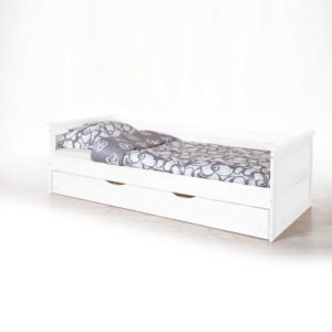 – Massivholzbett Weiß – Bettgestell Kiefer Massivholz – Bett Klassisch schlicht – Ausziehbett Breite: 209 – Holzbett Höhe: 69 – Bettrahmen Tiefe: 99 – Tandembett Bettseitenhöhe [Einstieg]: 35 – Naturholzbetten Liegemaße: 90×200 – Vollholzbett Ohne Beleuchtung – Funktionsbett Zerlegt, zum leichten Selbstaufbau (Montageanleitung liegt bei) – Echtholzbett Lieferung ohne Matratze – Massiv vollholz betten Lieferung ohne Lattenrost – Bett mit schubladen Vertiefung für Lattenrahmen (cm): 11 – Stauraumbett Fußende-Höhe (cm): 69 – Naturholzbetten massiv Kopfende-Höhe (cm): 69 – Massivbett Kopfende: ohne Kopfteil – Massive betten holz Bodenabstand zum Seitenteil (cm): 21 – Multifunktionsbett Füße: Wangen an Kopf- und Fußende – Schubladenbett Massivholz Oberfläche und Lackiert – Holzbettgestell Ausziehbett 90×200 – Massivholzbettgestell Belastbar 120-149 KGInformationen zur Lieferung:Die Zustellung dieses Produktes erfolgt per DPD. Sollten Sie bei der Erstzustellung nicht angetroffen werden, hinterlässt der Zusteller in Ihrem Briefkasten eine Benachrichtigungskarte mit dem zweiten Liefertermin, den Lieferdaten sowie Kontaktinformationen. Somit haben Sie die Möglichkeit, sich bezüglich des Empfangs Ihrer Ware mit DPD in Verbindung zu setzen. Die Zustellung erfolgt maximal 3x, sofern die beiden ersten Termine erfolglos bleiben sollten. Die Auslieferung erfolgt von Montags bis Freitags. Eine Zustellung an Sonn- und Feiertagen ist nicht möglich.