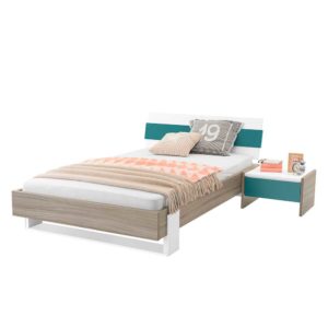 – Futonbett Holz, Weiß und Petrol – Bettgestell Spanplatte – Jugendbett Modern & Jung – Doppelbett Höhe: 78 – Bett Tiefe: 210 – Kingsize bett Bettseitenhöhe [Einstieg]: 35 – Einzelbett Inkl. 1 Nachtkommode – Bettrahmen Mehrteilig: 2-teilig – Großes bett Ohne Beleuchtung – Jugendzimmer bett Zerlegt, zum leichten Selbstaufbau (Montageanleitung liegt bei) – Niedriges bett Deutsche Produktion – Flaches bett Lieferung ohne Matratze – Doppel bett Lieferung ohne Lattenrost – Kinder jugendbett Vertiefung für Lattenrahmen (cm): 14 – Singlebett Fußende-Höhe (cm): 35 – Futonbettgestell Kopfende-Höhe (cm): 78 – Tiefes bett Kopfende: schräg, für bequemes Sitzen im Bett – Flaches bettgestell Bodenabstand zum Seitenteil (cm): 15 – Doppelbettgestell Füße: Kufenfüße – Niedriges bettgestell Melaminbeschichtet – Breites bett Rechteckige Form Varianten – Doppeltbett 001: Breite: 99 / Liegemaße: 90×200 – 2 personen bett 002: Breite: 109 / Liegemaße: 100×200 – Bett für 2 personen 003: Breite: 129 / Liegemaße: 120×200 – Einzelbettgestell 004: Breite: 149 / Liegemaße: 140x200Informationen zur Lieferung:Die Zustellung dieses Produktes erfolgt per Spedition. Sie werden vor der Auslieferung durch die ausliefernde Spedition kontaktiert.Terminvereinbarung: Sie werden frühzeitig (ein paar Tage im Voraus) durch die ausliefernde Spedition kontaktiert und Ihnen der Auslieferzeitpunkt mitgeteilt. Die Kontaktaufnahme erfolgt per Telefon. Bei telefonischer Nichterreichbarkeit werden Sie per Postkarte über das Auslieferdatum informiert.Die Lieferung erfolgt aus Kostengründen Frei Bordsteinkante (bis zur ersten verschlossenen Tür). Für den weiteren Transport der Ware sind Sie eigenverantwortlich.Die Auslieferung erfolgt von Montags bis Freitags. Eine Zustellung an Sonn- und Feiertagen ist nicht möglich.