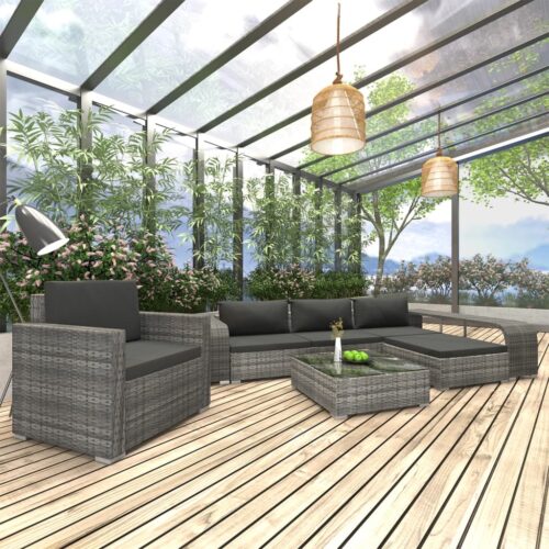 • vidaXL 6-tlg. Garten-Lounge-Set mit Auflagen Poly Rattan Grau