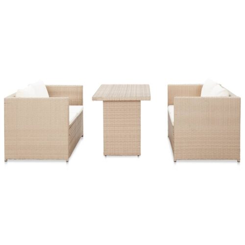 • vidaXL 3-tlg. Garten-Lounge-Set mit Auflagen Poly Rattan Beige