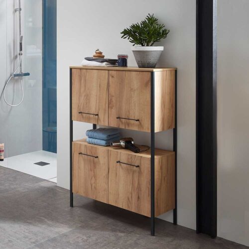 Badkommode im Wildeiche Dekor und Anthrazit Stahl Loft