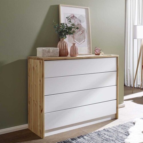 Schlafzimmer Kommode in Weiß und Eiche massiv modern