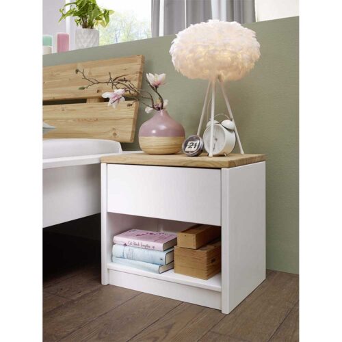 Nachtkonsole in Weiß und Eiche massiv 50 cm breit