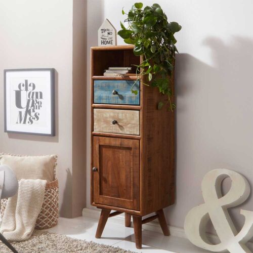 • Hohe Kommode in Bunt Sheesham Massivholz