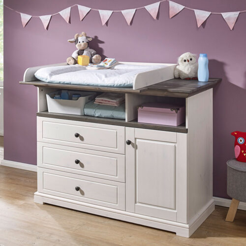 Babywickelkommode in Weiß und Grey Wash Kiefer Massivholz