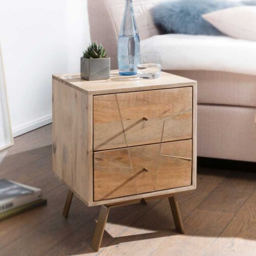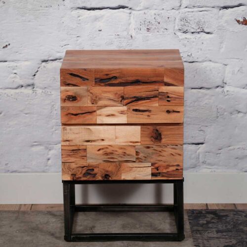 Nachtschränkchen aus Mangobaum Massivholz Eisen