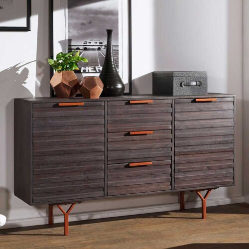 Wohnzimmerkommode in Grau und Kupferfarben Akazie Massivholz