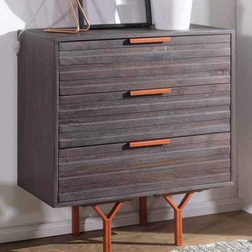 Schubladenkommode in Grau Akazie massiv Kupferfarben