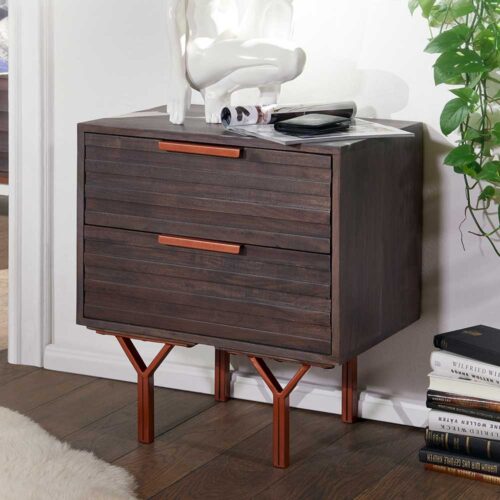 Nachtkonsole in Grau Akazie massiv Kupferfarben Stahl