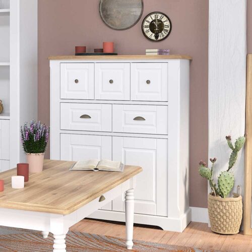 • Große Kommode in Weiß und Eiche Dekor Skandi Design