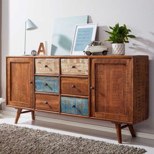 Sideboard aus Mangobaum Massivholz sechs Schubladen