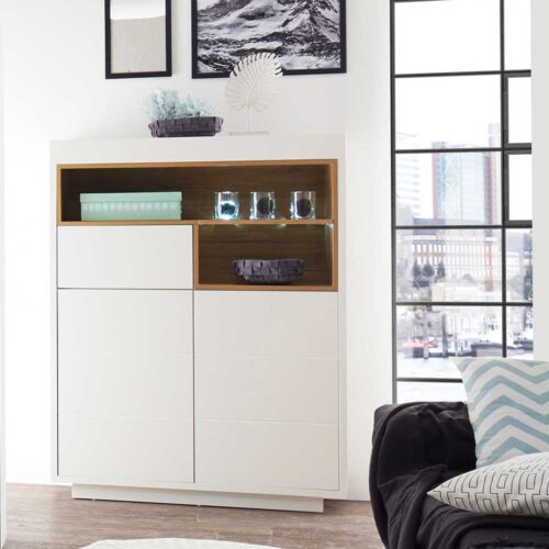Wohnzimmer Highboard in Weiß und Eiche Dekor Skandi