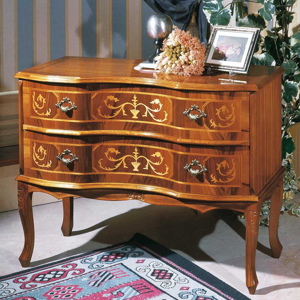 2 Schubladen Kommode im Barockstil Nussbaum furniert