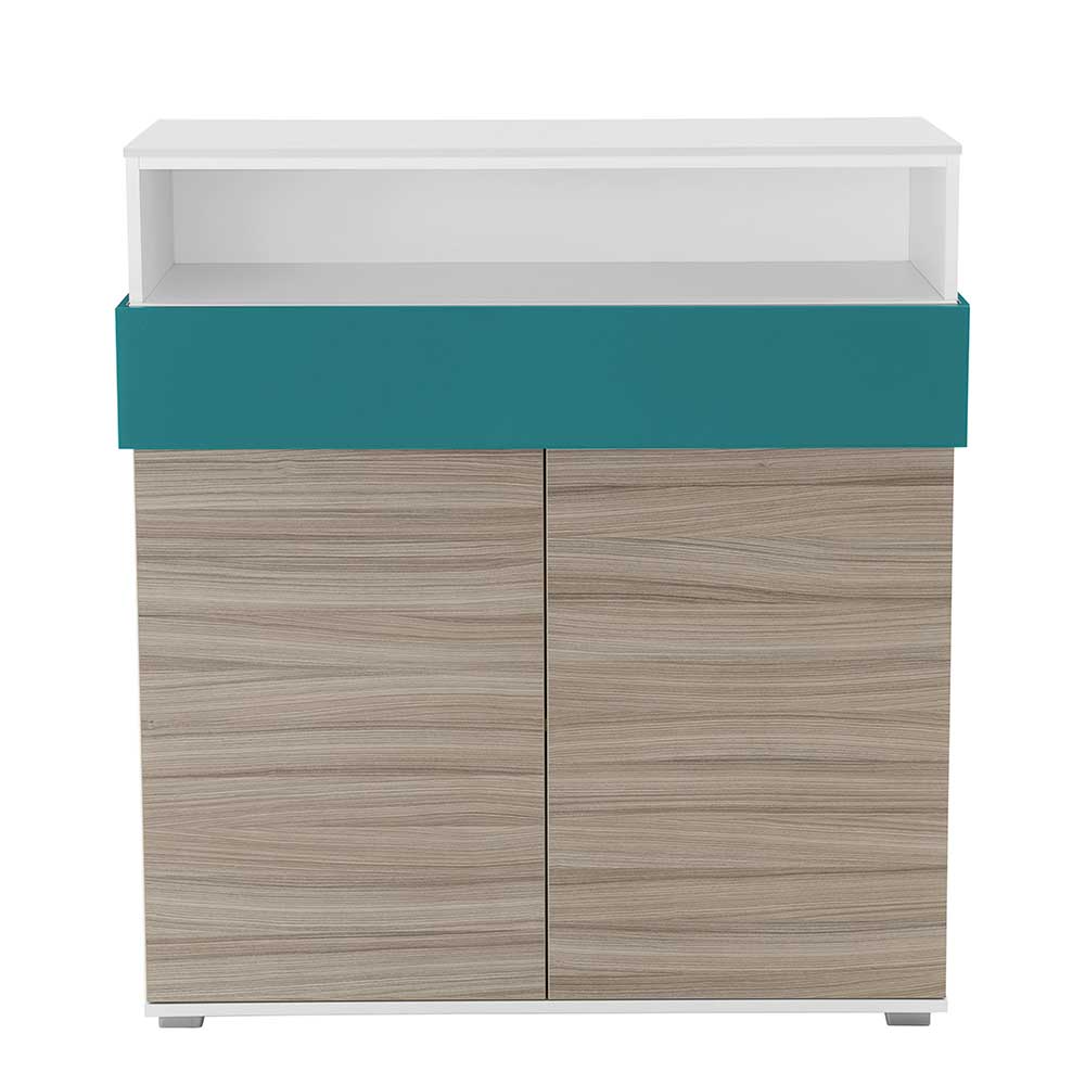 – Kommode Weiß, Holz und Petrol – Flurkommode Spanplatte – Küchenkommode Modern & Jung – Wohnzimmer kommode Breite: 103 – Flur kommoden Höhe: 111 – Wohnzimmerkommode Tiefe: 47 – Mit einer Schublade und mit Metallauszug – Schrank-Tür: mit Drehtüren – 2-türig, Innenaufteilung: mit Einlegeböden – LED Beleuchtung – Fertig montierte Anlieferung (eventuell müssen noch Kleinteile angebracht werden) – Deutsche Produktion – 4-Fuß Gestell aus Kunststoff – Melaminbeschichtet – Mit stoßfesten ABS Kanten – Rechteckige Form – Holzwerkstoff Tür – Energieeffizienzklasse: LEDInformationen zur Lieferung:Die Zustellung dieses Produktes erfolgt per Spedition. Sie werden vor der Auslieferung durch die ausliefernde Spedition kontaktiert.Terminvereinbarung: Sie werden frühzeitig (ein paar Tage im Voraus) durch die ausliefernde Spedition kontaktiert und Ihnen der Auslieferzeitpunkt mitgeteilt. Die Kontaktaufnahme erfolgt per Telefon. Bei telefonischer Nichterreichbarkeit werden Sie per Postkarte über das Auslieferdatum informiert.Die Lieferung erfolgt aus Kostengründen Frei Bordsteinkante (bis zur ersten verschlossenen Tür). Für den weiteren Transport der Ware sind Sie eigenverantwortlich.Die Auslieferung erfolgt von Montags bis Freitags. Eine Zustellung an Sonn- und Feiertagen ist nicht möglich.