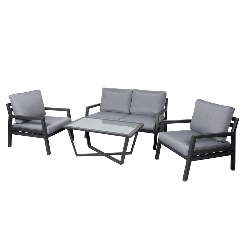 Die Alu-Loungegruppe ‘Piazza’ eignet sich ideal dazu, Ihre Dining- und Sitzlandschaft outdoor aufzuwerten. Dieses geschmackvoll gestaltete und pflegeleichte Set mit einem Gestell aus Leichtmetall Aluminium erhalten Sie inklusive weich gepolsterter Auflagen. Ein besonderes Highlight stellt der Tisch mit Glasplatte dar.