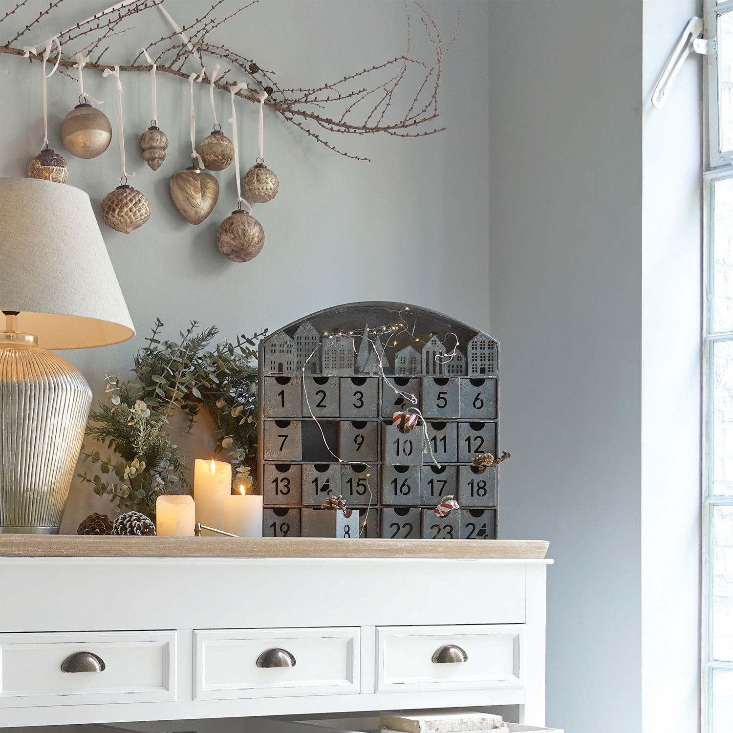 Ein kunstvolles und detailreiches Design aus Eisen mit einer sehr dekorativen Mini-Stadt ziert den edlen Adventskalender. Die Häuschen sind fein ausgestanzt, ebenso wie die Ziffern auf den 24 ausziehbaren, kleinen Fächern. Eine Lichterkette mit 30 warmweißen LEDs taucht sie in eine stilechte Weihnachtsstimmung. Die 24 Türchen lassen sich individuell befüllen, sodass Sie Ihre Lieben ganz persönlich überraschen können. Schmuckstücke, Zuckerwerk, Nüsse oder Teebeutelchen – werden Sie kreativ. Das langlebige Modell kann alle Jahre wieder verwendet werden, was es sehr nachhaltig macht. Zudem entsteht so auch eine schöne Tradition. Beim Anblick des hübschen Städtchens kann man ins Träumen kommen – ein romantischer Weihnachtsbummel im Schnee oder Weihnachtswichtel, die fleißig Geschenke verteilen? Lassen Sie Ihrer Phantasie freien Lauf und genießen Sie die Weihnachtszeit mit diesem wertvollen Schmuckstück in vollen Zügen. Oder verschenken Sie den Adventskalender an Ihre Liebsten. Die Stadt wird mit Batteriebetrieb erleuchtet, ganz ohne störende Kabel.