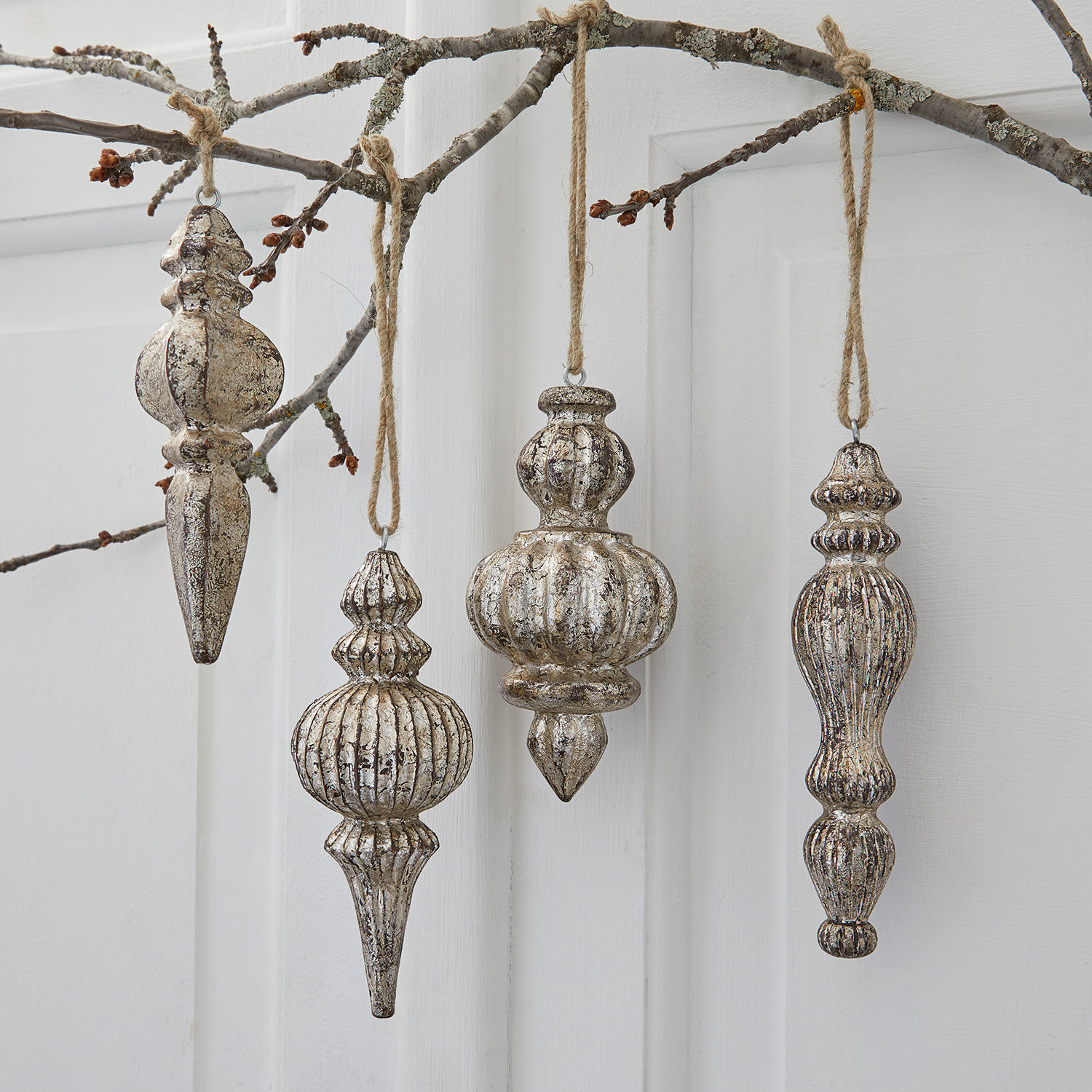 Äußerst originell, festlich und natürlich schön präsentiert sich dieses vierteilige Set. Die Anhänger werden aus Mangoholz geschnitzt und mit einem besonderen Antik-Finish veredelt, das sie hübsch glänzen lässt. Sämtliche Schritte werden in traditionsreicher Handarbeit durchgeführt. Nur so lässt sich dieser herrliche Detailreichtum erzielen, den man nicht nur sehen, sondern auch fühlen kann. Die kunstvollen Formen und filigranen Muster sind perfekt aufeinander abgestimmt. Jedes Stück präsentiert feine optische Nuancen, die es zu einem Unikat machen. Das geschmackvolle Ensemble wird von naturbelassenen Jute-Kordeln perfekt abgerundet. Zieren Sie mit diesen Schmuckstücken Ihren Weihnachtsbaum oder auch Girlanden. Sie können die Anhänger auch an Ihre Weihnachtsgeschenke binden, was ihnen das gewisse Etwas verleihen wird.
