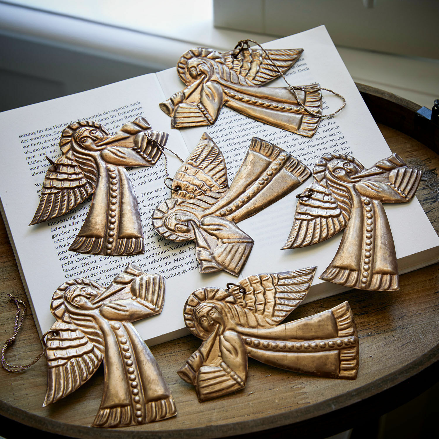 Dieses wunderhübsche Set punktet mit kunstvollen Details. Die Anhänger sind antiken Engelsmotiven nachempfunden und aus hochwertigem Eisen geformt. Die Oberfläche des Materials erinnert an Silber, das über viele Jahre gealtert ist. Auch ihre filigrane Aufhängung ist optisch perfekt darauf abgestimmt. Der Begriff Anhänger wird diesen Mini-Kunstwerken kaum gerecht, denn mit ihrer einzigartigen Ästhetik werten die kleinen Schmuckstücke nicht nur festliche Arrangements auf. Setzen Sie damit kunstvolle Akzente am Weihnachtsbaum, schmücken Sie Ihre Lieblingsservietten an einer festlich geschmückten Tafel oder behängen Sie Sträucher oder Kränze damit!