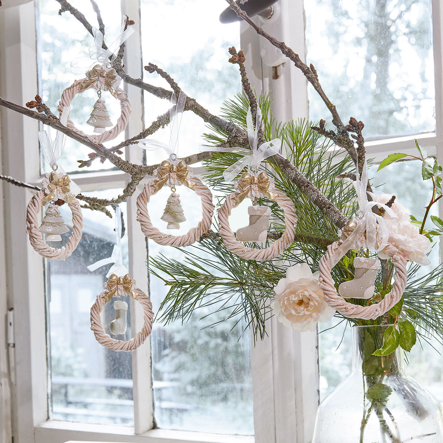 Fröhliche Weihnacht überall – diese schöne, festliche Stimmung kommt mit dem detailreichen Sechser-Set zu Ihnen. Die hübschen Anhänger aus Polyresin sind von Hand bemalt und verfeinert. Sie erhalten unterschiedliche Designs im Set, die perfekt miteinander harmonieren und die Feiertage versüßen. Ein Band zum Aufhängen ist schon angebracht, sodass Sie die nostalgisch inspirierten, kleinen Kunstwerke gleich fleißig verteilen können. Die Tanne, ein Gesteck aus Winterzweigen oder eine Girlande freuen sich darüber. Erschaffen Sie Ihr ganz persönliches Weihnachtswunder und genießen Sie die besinnliche Zeit voll und ganz – mit gekonnter Dekoration wie den feinen Anhängern gelingt das gleich noch besser.