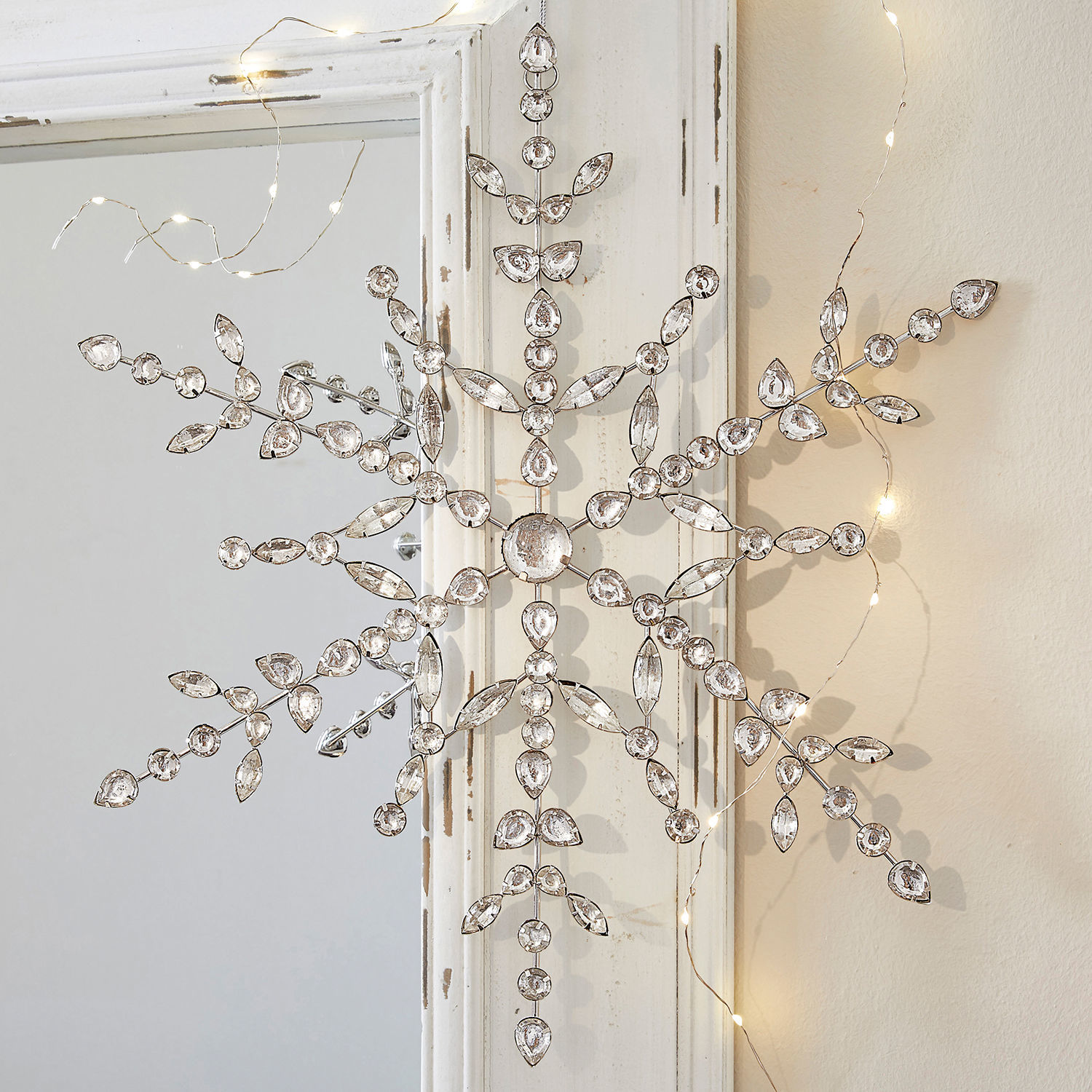 Holen Sie sich den Zauber einer verschneiten Landschaft nach Hause und träumen Sie vom Eispalast der Schneekönigin. Dazu lädt dieser wunderschöne, große Anhänger ein. Die filigrane Handarbeit ist mit einem edlen Seidenband versehen, sodass Sie gleich mit dem Dekorieren beginnen können. Der feine Anhänger in Form einer Schneeflocke besteht aus Eisen und Glas – ein funkelnder Schatz, der jedes Ambiente ziert. Hängen Sie das Kunstwerk vielleicht an einem Wandhaken oder einem Balken auf, oder schmücken Sie Tür- oder Fenstergriff damit. Auch am Fenster ist es eine wunderbare Zierde. Hier gelingt Ihnen zu jedem Ambiente ein stilvolles Highlight und das den ganzen Winter hindurch.