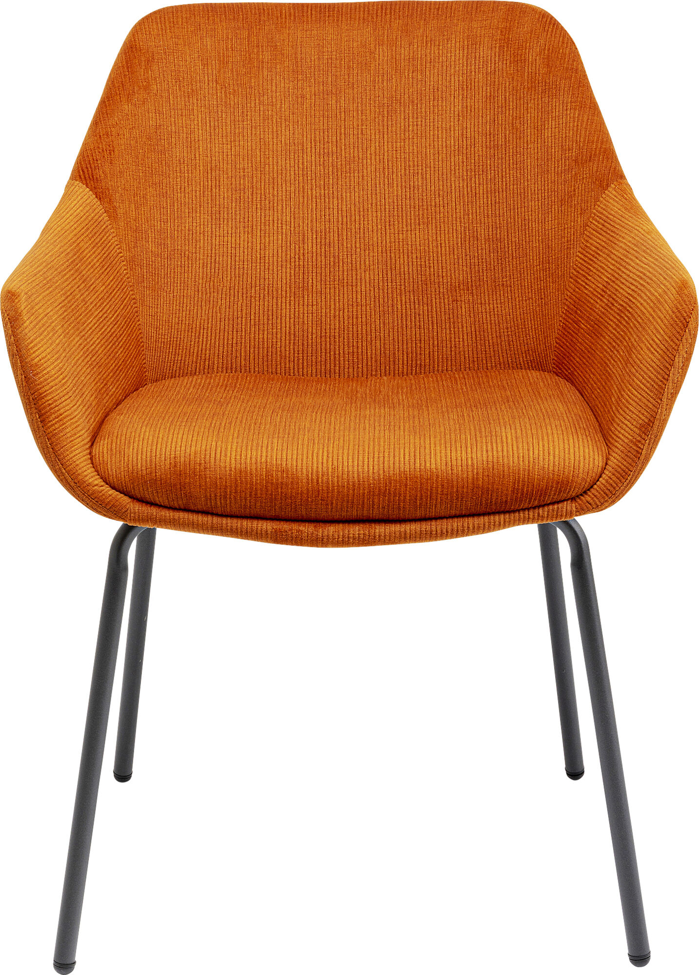 Klassisches Design trifft auf modernen Look: Mit dem schmeichelnden Bezug in Orange ist dieser Polsterstuhl in Schalenform ein echtes Style-Statement. Das schlanke Stahlgestell und die ergonomische Sitzschale kreieren eine elegante Silhouette. Dieser Armlehnstuhl macht im Esszimmer, Wohnzimmer oder im Office – ja einfach überall – eine gute Figur. Und dabei ist er auch noch bequem. Material: (Bezug: 100 % Polyester : Cord, Polsterung: 24 kg/m³ Polyurethan, Sitzschale: Spanplatte naturbelassen, Beine: Stahl pulverbeschichtet)