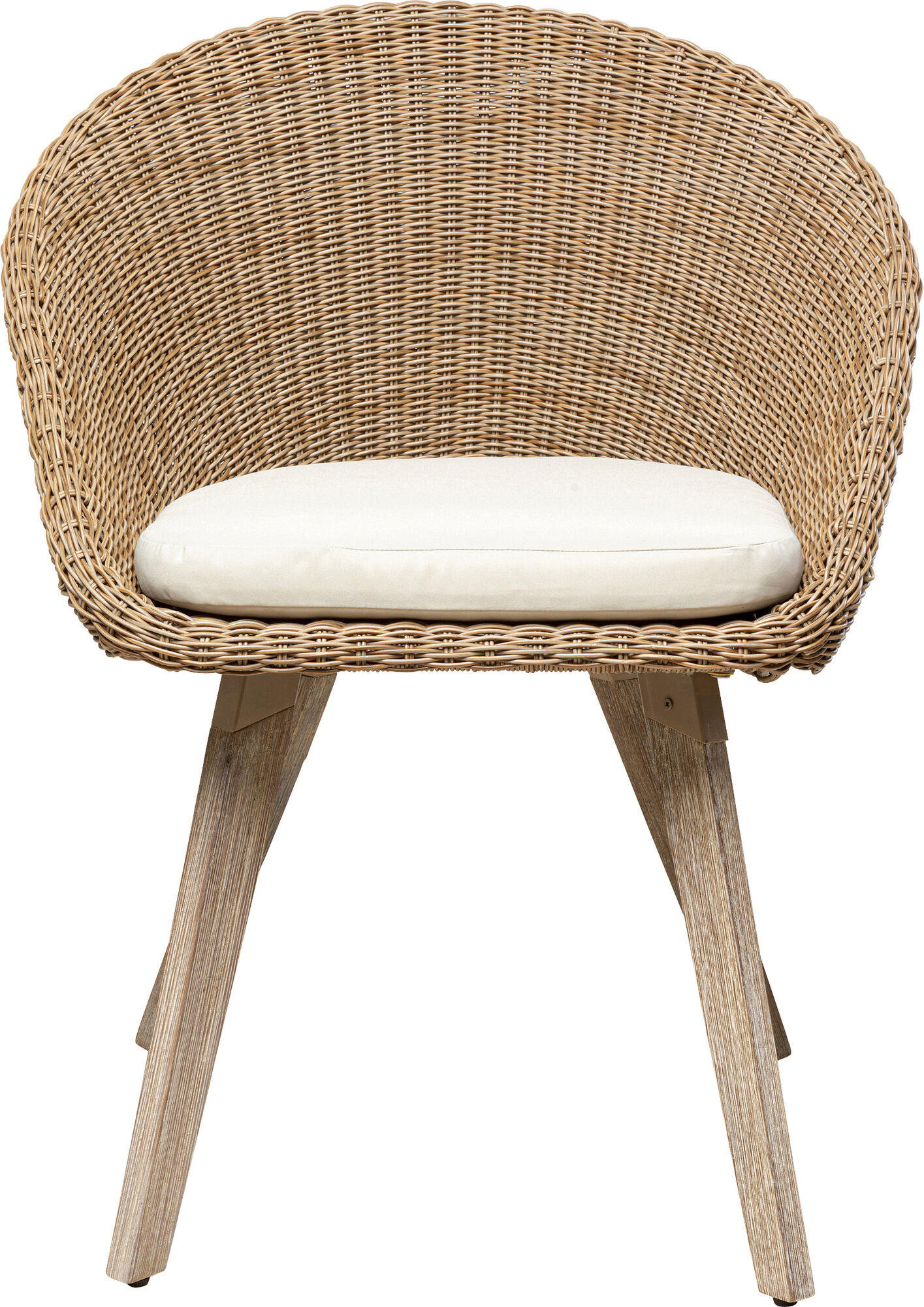 Mit diesem modernen Armlehnstuhl investieren Sie in hochwertige Materialien und ein Design, das Trends überdauert. Unser Stuhl für Balkon, Terrasse und Garten ist so entworfen, dass er auch in Innenräumen ein Schmuckstück ist, zum Beispiel am Esstisch. Das Rattangeflecht unterstreicht den natürlichen Wohnstil. Akazienholz, das für die Beine verarbeitet wurde, ist besonders robust und gewährleistet so die Langlebigkeit dieses Outdoor-Stuhls. Material: (Polsterung: 22 kg/m³ Polsterschaum Polyurethan, Beine: Akazie Massivholz gewachst, Bezug: 100 % Polyester, Sitzschlale: Rattan)