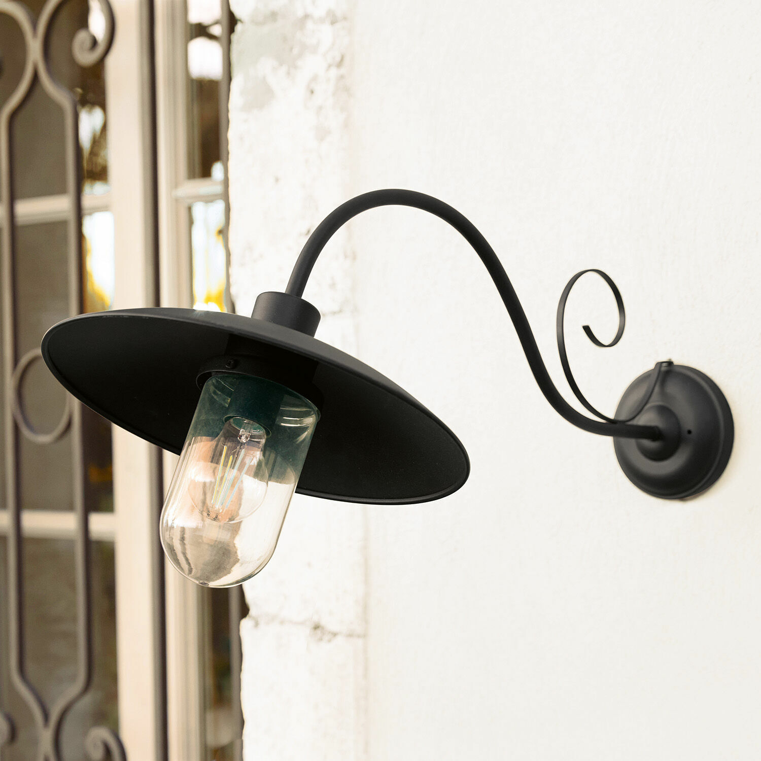 Die klassische Hoflampe verkörpert die perfekte Mischung aus zwei absoluten zeitlosen Trends: Landhaus- und Industrial-Chic. Aus robustem, handbearbeiteten Eisen gefertigt, überzeugt auch die matt-schwarze Lasur, die die dekorative Außenwandlampe erst wetterfest macht. Befestigen lässt sich die Wandlampe mit zwei Schrauben und den entsprechenden Dübeln (exklusive) an jeder Wand – ob über der Eingangstür, auf der Terrasse oder dem Balkon. Toll: Durch die Entfernung zur Wand und den nur leicht gewölbten sowie recht großen Lampenschirm kann auch ein Tisch unter freiem Himmel (zum Beispiel auf der Terrasse am Haus) ganz wunderbar ausgeleuchtet werden. Die zur Lampe passende Glühlampe ist nicht im Lieferumfang enthalten.