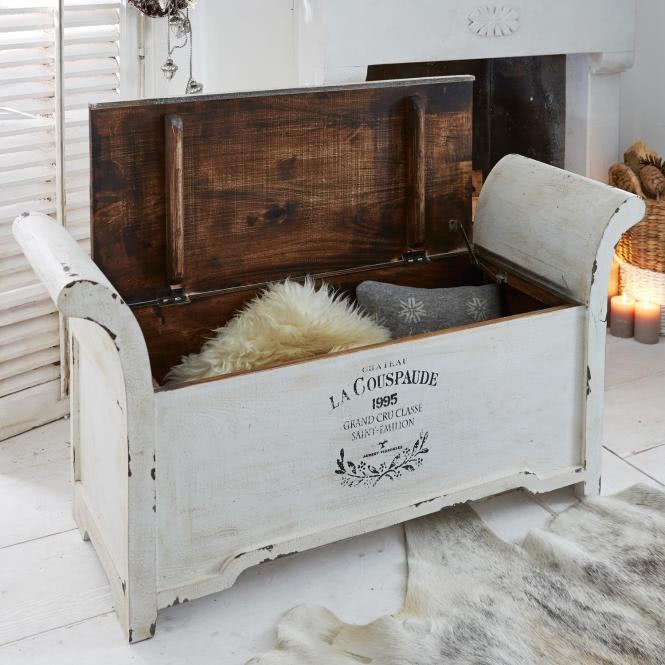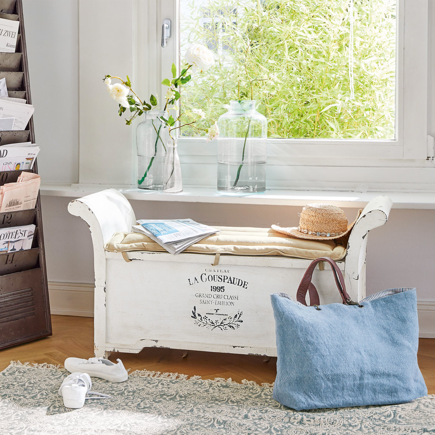Sitzbank im Antik-Chic inklusive Sitzauflage. Diese Sitzbank überzeugt nicht nur mit ihrem romantischen Design im Stil des Shabby-Chic. Auch die hochwertige […]