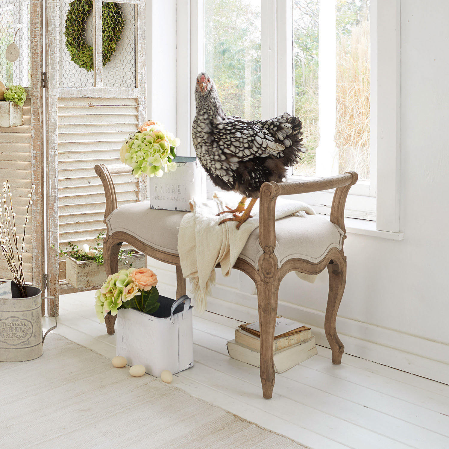 Eleganter historischer Charakter. Gestell aus kunstvoll geschnitztem Eichenholz mit Antik-Finish, Bezug aus reinem Leinen. Ein zierliches und edles Design mit […]