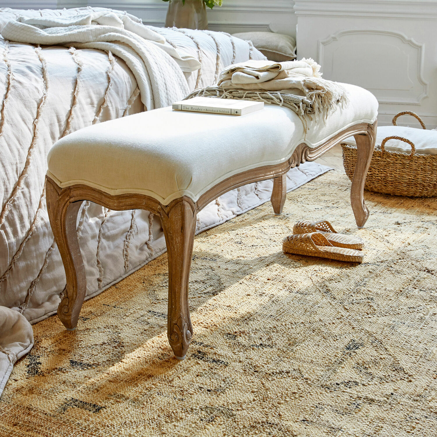 Bänke wie diese standen früher in den Empfangsräumen fürstlicher Palais, wo die Geladenen dankbar darauf Platz nahmen, bis sie zu ihrer Audienz gerufen wurden. Ganz so formell wird es in Ihrem Schlafzimmer nicht zugehen, doch die Bank wird sich dort ebenso stilvoll in Szene setzen wie die historischen Vorbilder. Und das gelingt ihr auf eindrucksvolle Weise, ist sie doch nach bester Handwerkstradition sorgfältig aus zwei edlen Naturmaterialien von Hand gefertigt. Das Gestell besteht aus massivem Mangoholz, der Bezug aus reinem Leinen. Das Mangoholz für die Bank stammt aus tropischen Obstplantagen, so dass es nicht nur ein besonders edles, sondern als Nebenprodukt des Obstanbaus auch ein ökologisch wertvolles Tropenholz ist. Leinen ist eine traditionsreiche Naturfaser, die mit einer angenehmen Haptik wie mit einer edlen Optik verwöhnt, wobei hier das natürliche Off-White besonders schön mit der feinen Leinenstruktur korrespondiert. Der besondere Reiz aber liegt natürlich in der barock anmutenden Formgebung mit den von Hand geschnitzten Verzierungen und den elegant geschwungenen Füßen, die die Bank zu einem exklusiven Schmuckstück machen. Sie bildet die charmante Ergänzung zum Bett 20257, die Bank wird aber auch als Solitär in anderen Interieur-Situationen wie Ankleidezimmer, Wohnraum oder Entrée gerne als stilvoller Sitzplatz dienen.