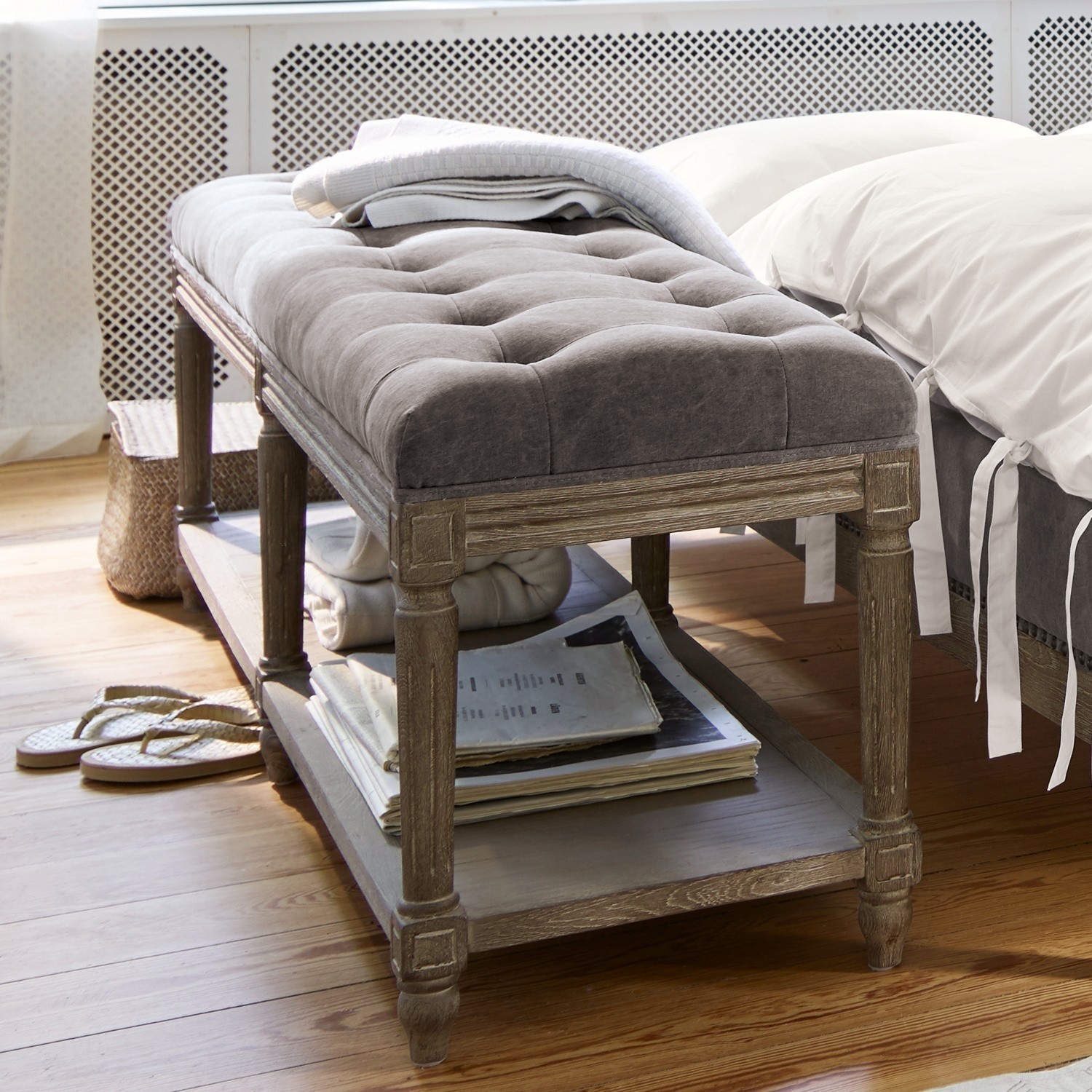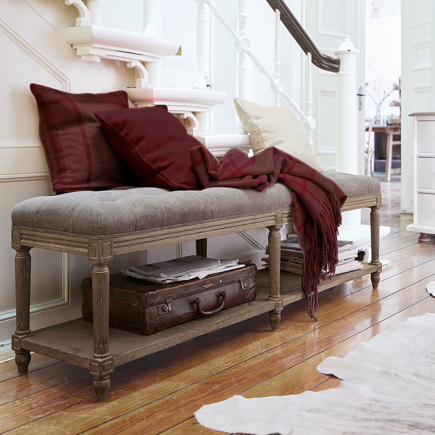 Landhaus-Flair deluxe. Aus kunstvoll geschnitztem Eichenholz und einem Bezug mit hohem Leinenanteil. Die komfortabel gepolsterte Sitzfläche ziert eine feine […]