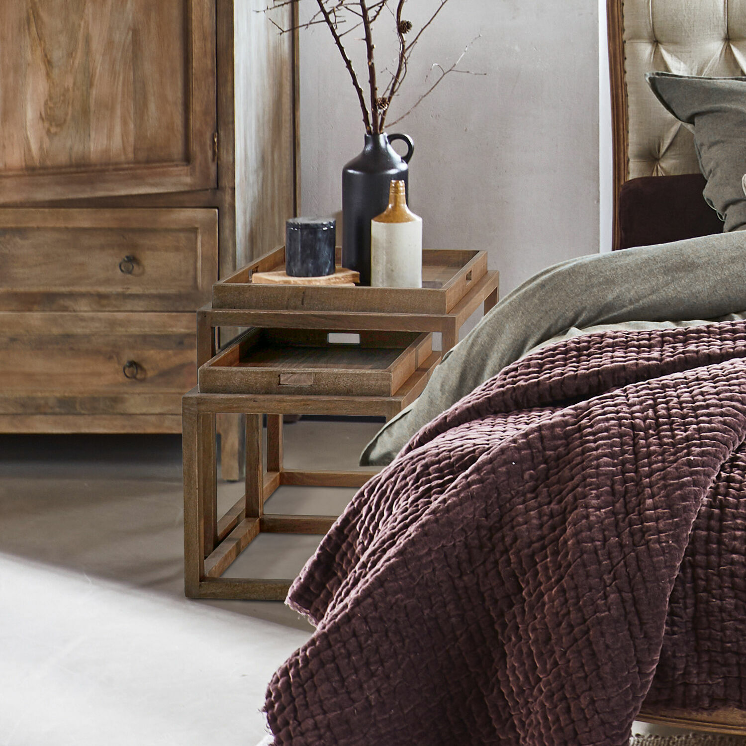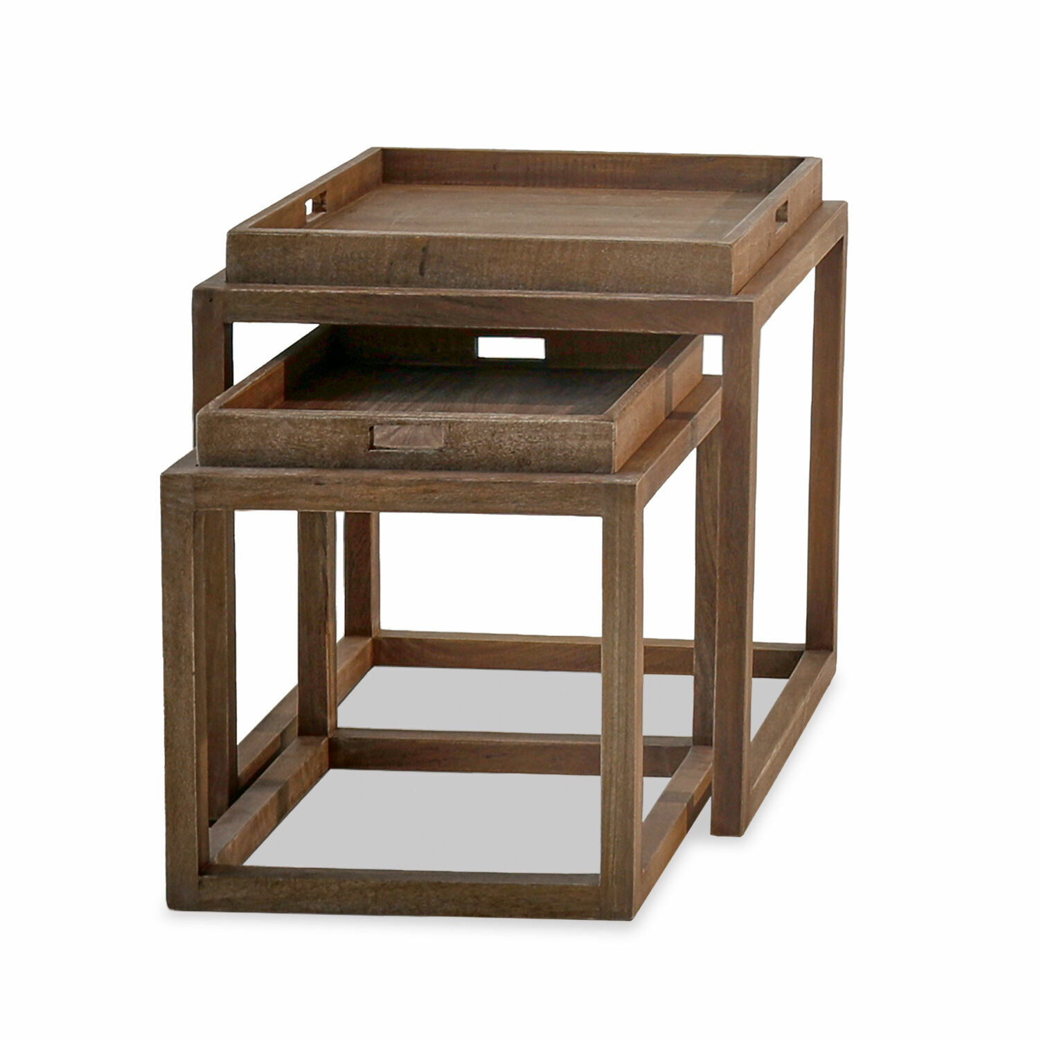 Durchdachte Funktion bei blendendem Aussehen: Dieses Duo für Ihr Sofa oder Ihre Tafel im Esszimmer begeistert durch seinen schicken, puristischen Look ebenso wie durch seine pragmatische Seite: Die schicken Beistelltische lassen sich in- und auseinander schieben. Das ist besonders praktisch, wenn unverhofft Ihre Freunde an der Tür klingeln und Sie Ihre Lieben zu einem Kaffee hereinbitten. Ein Handgriff und die schicken Tische bieten Platz für Getränke und Snacks aller Art. Und der Transport der Köstlichkeiten von der Küche bis zu den Tischchen in der geselligen Runde könnte einfacher nicht sein: Denn jeder der beiden Tische ist mit einem abnehmbaren Tablett versehen. Das naturbelassene Mangoholz, das die Tische mit seiner schönen Maserung schmückt, ist das letzte Mosaiksteinchen in diesem Bild der Perfektion.