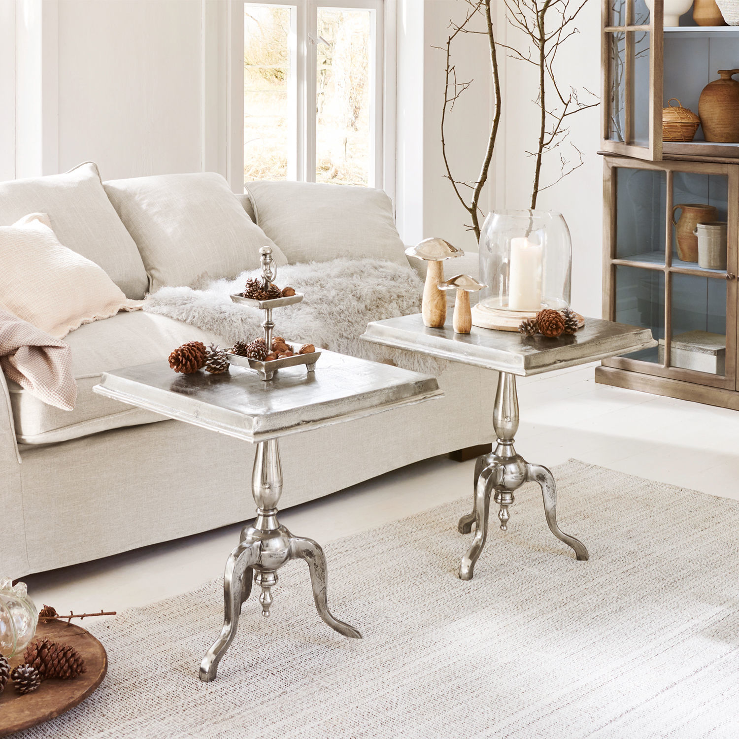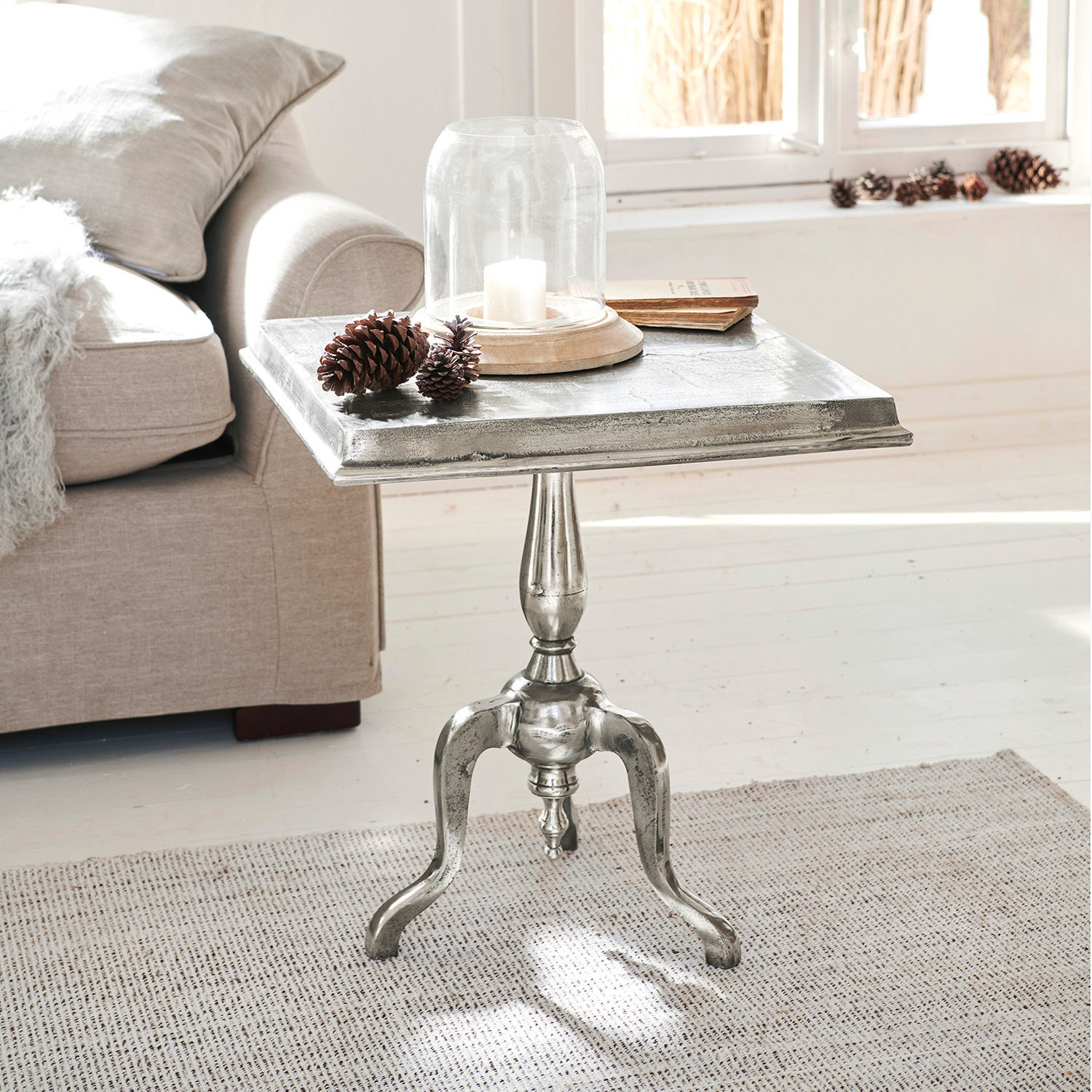 Dieser klassisch schöne, luxuriöse Beistelltisch gefällt mit geraden Linien und zeitlosem Look. Durch das Gussverfahren entstehen spezielle Oberflächen, Strukturen und Muster, die ihm einen individuellen Charakter geben. Ein Hauch Nostalgie schwingt auch mit, und der kunstvoll geformte Fuß ergänzt das stilsichere Design perfekt. Dieses elegante Modell passt sich jedem Interieur harmonisch an. Der eher niedrige Beistelltisch macht eine sehr gute Figur neben dem Sofa, vielleicht mit einer Lampe, Coffee Table Books, Kerzen oder anderen Lieblingsgegenständen geschmückt. Pflanzen sehen ebenso hübsch darauf platziert aus. Auch neben dem Bett oder an ganz anderer Stelle entsteht hiermit ein geschmackvoller und dekorativer Akzent. Eine weitere Idee: Sie könnten eine orientalisch inspirierte Lounge mit Sitzkissen dazu stellen und den handlichen Tisch dort als Herzstück zum Teetrinken oder Lesen nutzen. Das langlebige und stabile Accessoire erfreut viele Jahre lang und ist sehr vielseitig einzusetzen.
