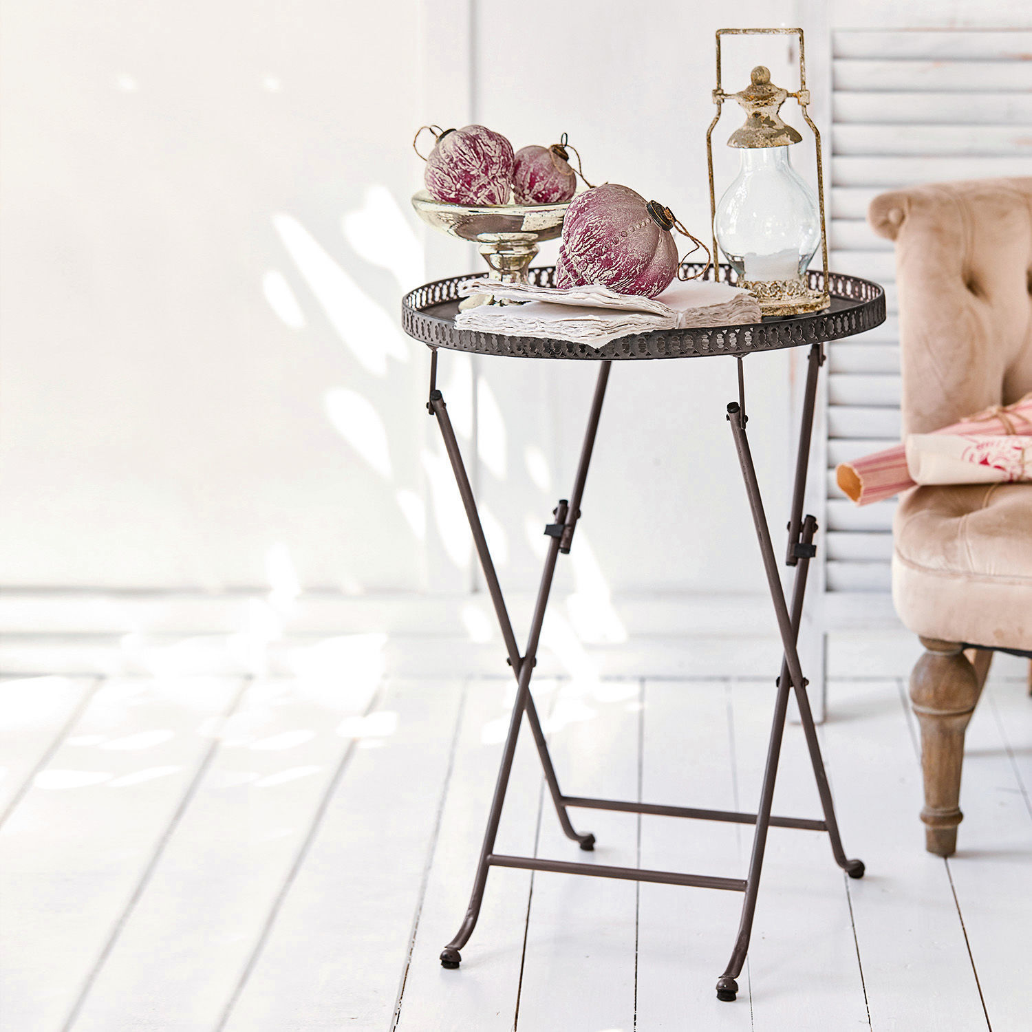 Praktischer Klapptisch im Antik Look. Tischplatte in Tablett-Optik mit hübschem Zierrand. Platzsparend verstaubar. Der Tisch lässt sich auf die Schnelle sehr […]
