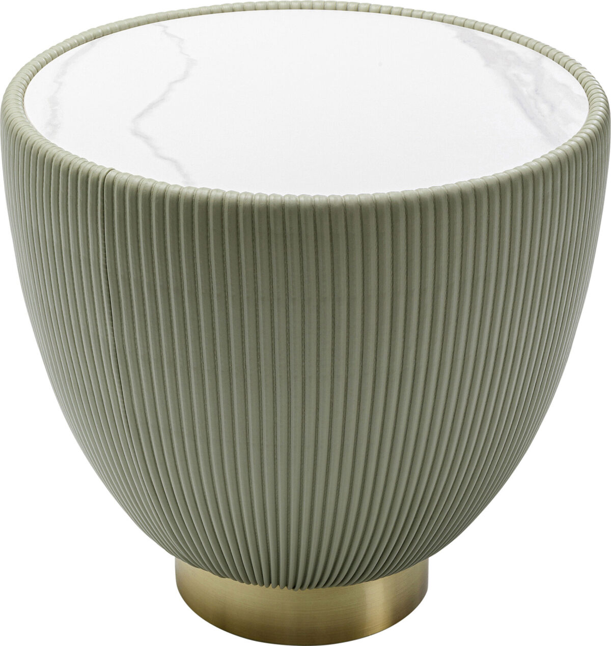 Der runde Beistelltisch Endless Vegas ist der passende Zusatz für jedes moderne Interieur. Die Tischplatte in heller Marmor-Optik verleiht dem kleinen Tisch eine luxuriöse Ausstrahlung, während der Sockel aus satiniertem Stahl stabilisiert und gleichzeitig als stilvolles Designelement dient. Die grüne Verkleidung in Lederoptik, welche gesteppt ist, verleiht dem Tisch eine unvergleichbare Haptik. Mit seinem einzigartigen Design ist der Vegas Beistelltisch ein echter Hingucker und ein Must-have für alle, die nach einer modernen und stilvollen Einrichtung suchen. Material: (Tischplatte: lackiert Keramik, Seitenteile: Polyurethan, Fuß/Füße: Stahl satiniert, Verkleidung: Textil polyurethanbeschichtet, Sockel: mitteldichte Faserplatte Melamin beschichtet)