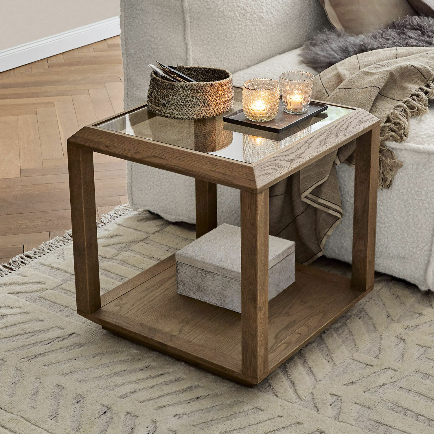 Schmücken Sie diesen edel designten Beistelltisch im faszinierenden Look mit einem Blumenbukett oder Ihren liebsten Sammlerstücken, mit einer schönen Vase oder Büchern. Oder nutzen Sie ihn zur Ablage von Snacks, Getränken und Ihrer Fernbedienung bei einem gemütlichen Fernsehabend. Auf diesem Schmuckstück, das größtenteils aus Eichenholz besteht und mit seiner individuellen charmanten Maserung besticht, wird es auf jeden Fall wunderbar praktisch und schön in Ihren vier Wänden. Der Rahmen des Tisches ist aus Vollholz und hält eine edle, temperierte Glasplatte. Besonders reizvoll: die natürliche Maserung des schönen Holzes und die abgeflachten Kanten des Designs, das diesen Tisch zu einem ganz besonderen Stilelement in Ihrem Zuhause macht. Zusammen mit dem passenden Couchtisch 21023 haben Sie eine perfekte Kombination.
