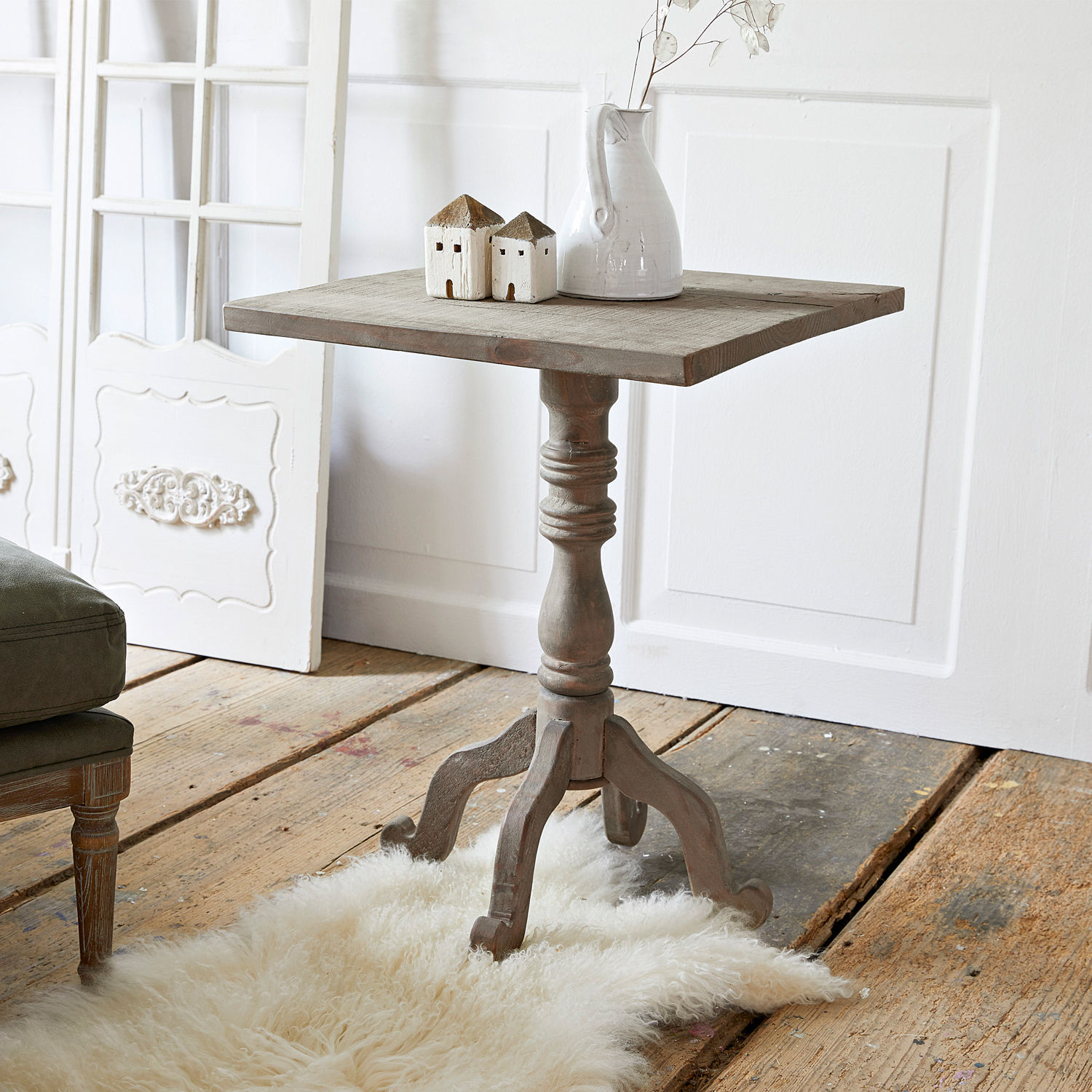 Mit diesem Beistelltisch haben Sie ein erlesenes Stück traditioneller Möbelkunst entdeckt, das aber dank neuer Materialien noch an Charakter gewonnen hat. Das Design ist ganz klassisch, denn die rustikale Tischplatte wird von einem barock anmutenden, aufwendig von Hand gedrechselten Fuß getragen, so dass sich der Beistelltisch in das typische Bild antiker Möbel einfügt, wie sie so wunderbar mit dem gehobenen Landhaus-Look harmonieren. Die Holzqualität aber ist immer noch neu und innovativ: wiederaufbereitetes Kiefernholz, das vor allem auf der schlichten Tischplatte seine individuelle Ausdruckskraft wirkungsvoll zur Schau stellen kann. Ob es sich bei dem Holz früher um die Deckenbalken eines urigen Bauernhauses handelte oder um den Fußboden in einem noblen Landsitz, weiß niemand. Und doch werden auch Sie die besondere Aura des Holzes spüren, die sich auch diesem Beistelltisch mitteilt. Damit ist das Tischchen ein Accessoire, das in die verschiedensten Raumsituationen integriert werden kann. Neben dem Lieblingssessel hält es am Abend alles in Griffweite, was den Feierabend noch schöner macht. es kann aber auch in einer Zimmerecke mit einem schönen Blumen-Potpourri oder einer Tischlampe für anheimelnde Stimmung sorgen. Da er zwar sehr stabil ist, aber nur ein geringes Gewicht hat, können Sie den Beistelltisch auch problemlos mal in einen anderen Raum, wie beispielsweise als Nachttischchen ins Gästezimmer tragen.