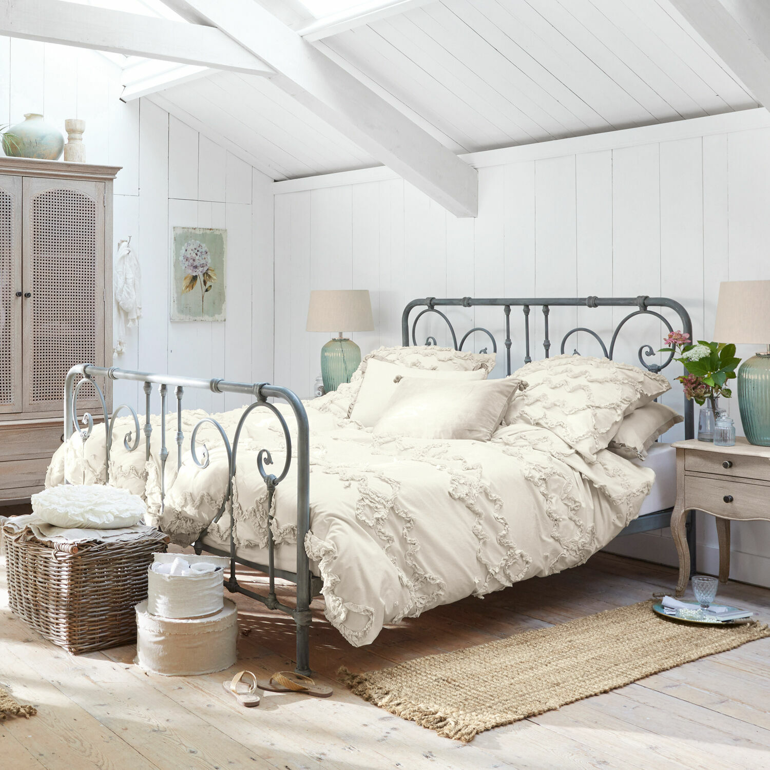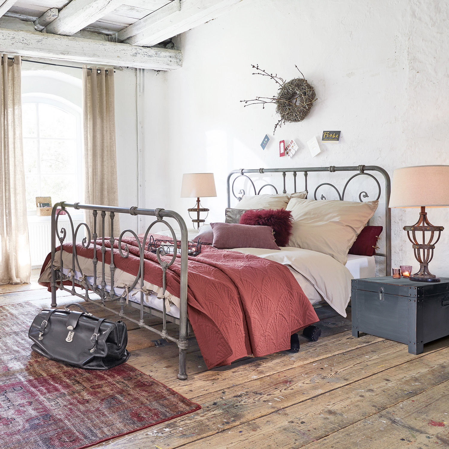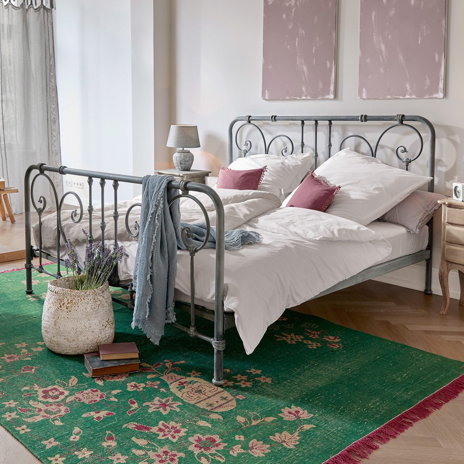 Wie man sich bettet, so liegt man. In diesem einzigartig schönen Ort für die nächtliche Erholung schlafen Sie garantiert besonders gut. Das stabile und großzügige Gestell aus Eisen bietet zwei Matratzen Platz. Die kunstvoll geschmiedeten Schnörkel und Streben verbreiten Romantik pur. So passt dieses traumhafte Teil ganz wunderbar zu romantischem Interior wie dem beliebten Shabby-Chic oder dem französischen Landhaus-Stil. Durch das Antik-Finish wird der nostalgische Charme verstärkt. Mit Zierkissen und schönen Plaids wird es tagsüber zum eindrucksvollen Kunstwerk, das auch zum Tagträumen einlädt. Sich in dieses Meisterwerk nicht zu verlieben, ist quasi unmöglich.