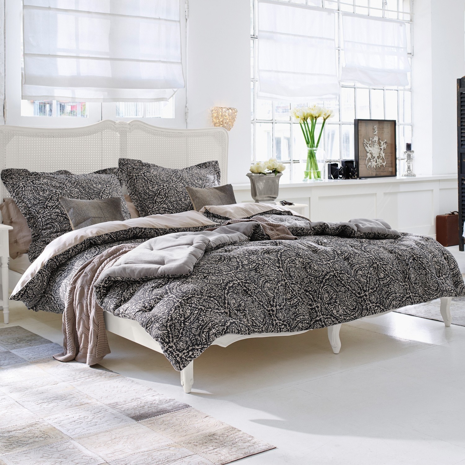 Paisley-Elemente und filigrane Rankenmuster definieren das fabelhafte Design dieser zweiteiligen Bettwäsche. Das Set beinhaltet je eine Kissen- und Deckenhülle aus kuschelig weicher Baumwolle. Der natürliche Stoff fühlt sich einfach phänomenal an – da möchte man gar nicht mehr aus dem Bett steigen. Während die Front wunderschön gemustert ist, präsentiert sich die Rückseite in uni. Natürlich kann die Bettwäsche in der Maschine gewaschen werden.