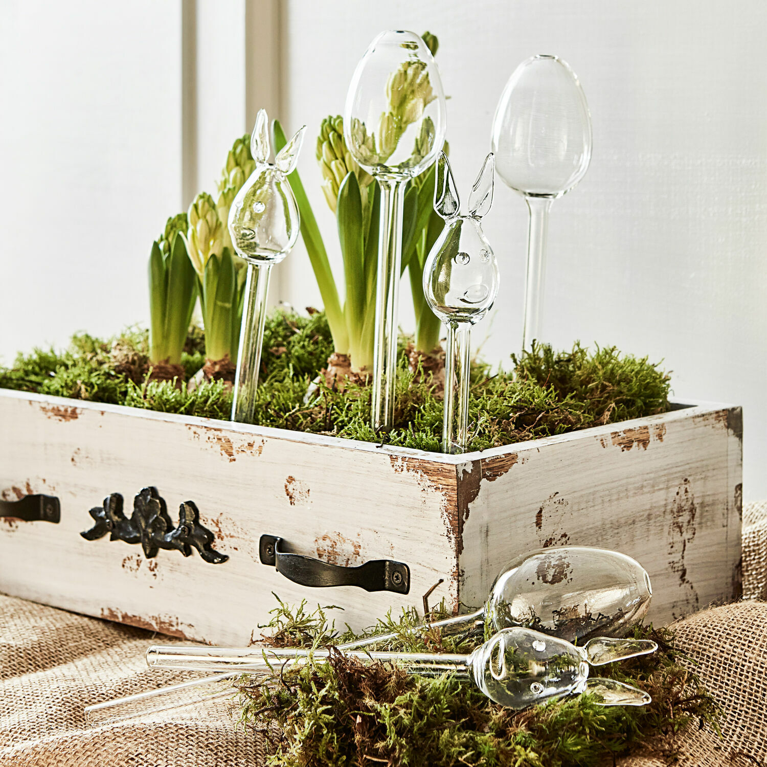 Die ersten Frühlingsboten auf Ihrem Balkon, die Kräutertöpfe in Ihrer Küche oder die hübschen Blüher am Blumenfenster in Ihrem Wohnzimmer – Pflanzen wohin man blickt – und das tägliche Gießen kann so viel Zeit in Anspruch nehmen. Da sind Bewässerungshilfen von besonders praktischem Nutzen. Umso schöner, wenn sie sich so edel und stimmungsvoll präsentieren wie dieses Set in Form von hübschen Ostereiern. Aus feinem Klarglas gefertigt, thronen sie auf einem langen, unten geöffneten Glasstab, der sich direkt in den Wurzelbereich stecken lässt. Durch eine Öffnung oben wird das Wasser eingefüllt und die Pflanze holt sich die Menge, die sie braucht. Ein einfaches, aber effizientes Bewässerungssystem, das die Osterzeit auf komfortable Weise verschönert. Selbst einen Kurzurlaub am Wochenende können Sie spontan planen, ohne gleich die Hilfe Ihrer Nachbarn zu benötigen.