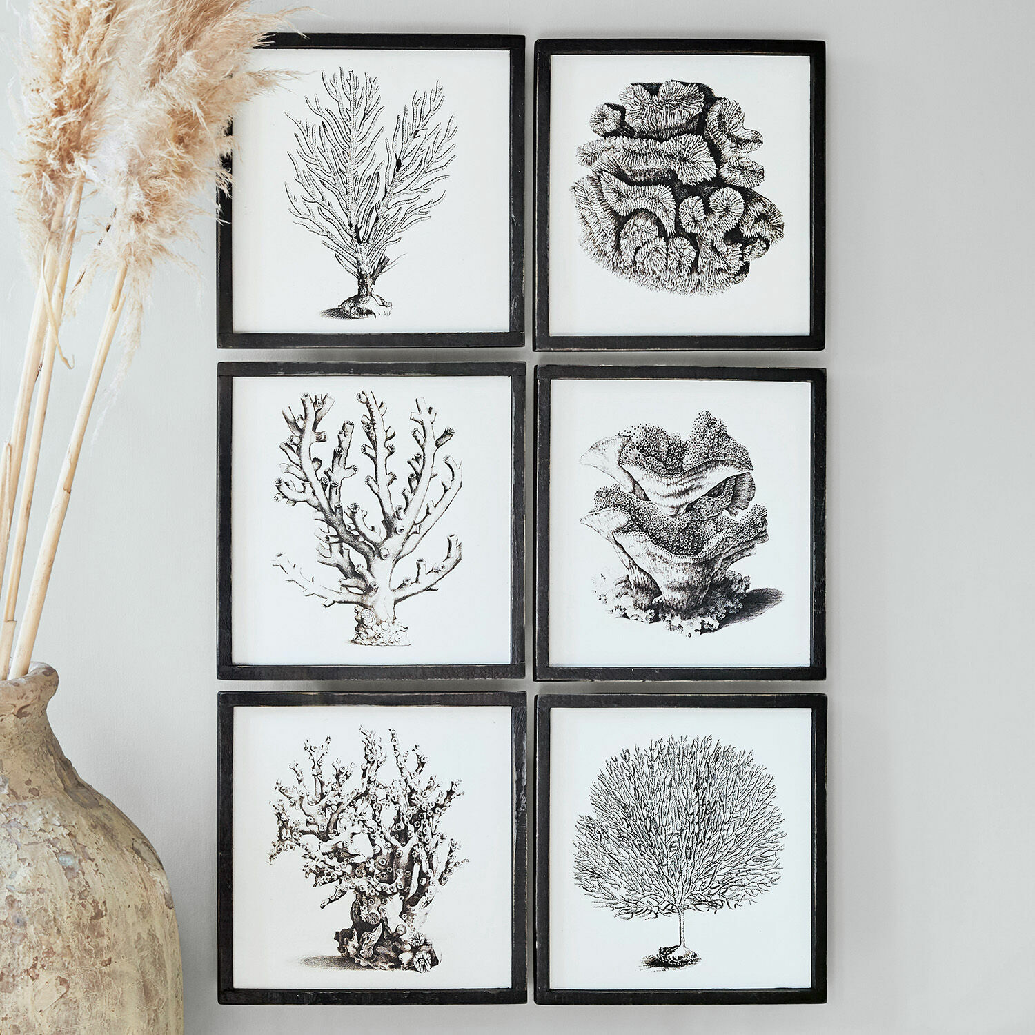 Hier kommt ein neues Highlight für Ihre ganz persönliche Kunstgalerie – dieses wertvolle Bild ist je ein Unikat. Denn hier haben die Schätze der Unterwasserwelt einen großen Auftritt, da hier sehr detailiert gerabeitet Bleistiftzeichnungen wunderschön zur Geltung kommen. Auf Holz gedruckt wirken die Pflanzen wie lebendig. Ihre Schönheit wurde auf die Weise für immer konserviert, sodass Sie einen maritimen und natürlichen Schmuck in Ihrem Heim genießen können. Ein wertvoller Tannenholz-Rahmen mit Antik-Finish rundet das Schmuckstück perfekt ab. Das stilvolle Bild können Sie dank zwei Haken mühelos an der Wand befestigen und sich sogleich über eine stilsichere Zierde in Wohn- oder Schlafzimmer wie auch im Home Office freuen, die vielen Interieurs schmeichelt.