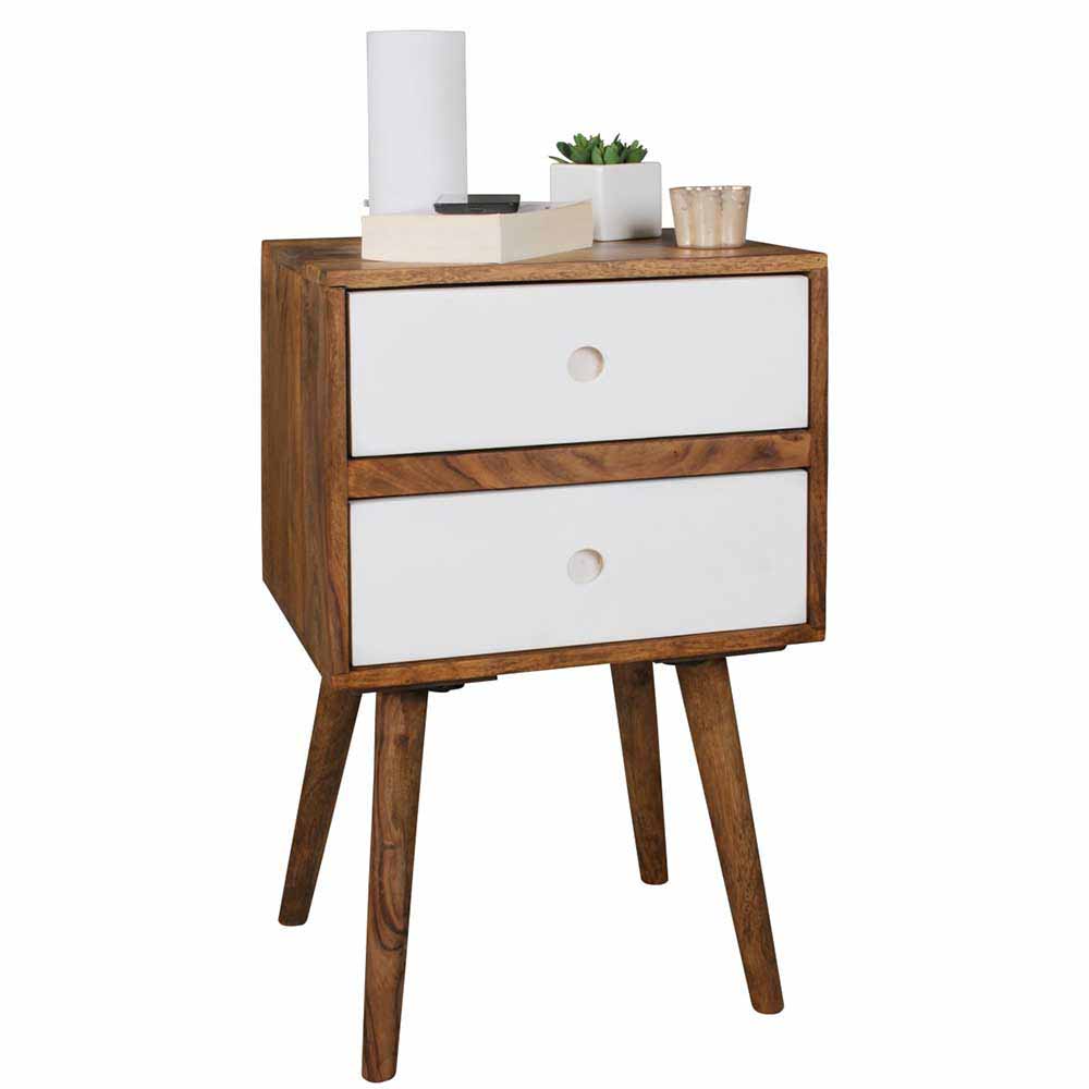 – Nachttisch Weiß und Sheeshamfarben – Nachtschrank Sheesham Massivholz – Kommode Retrostil – Nachtschränkchen Breite: 40 – Nachtkonsole Höhe: 67 – Beistellschrank Tiefe: 35 – Nachttischschrank Mit zwei Schubladen und mit Holzauszug – Nachtkästchen Ohne Beleuchtung – Nachtkommode Zerlegt, zum leichten Selbstaufbau (Montageanleitung liegt bei) – Nachttischschränkchen 4-Fuß Gestell aus Massivholz – Nachttischchen Massivholz Oberfläche und Lackiert – Nachttisch kommode Griffmulden – Nachttisch schrank Rechteckige FormInformationen zur Lieferung:Die Zustellung dieses Produktes erfolgt per DPD. Sollten Sie bei der Erstzustellung nicht angetroffen werden, hinterlässt der Zusteller in Ihrem Briefkasten eine Benachrichtigungskarte mit dem zweiten Liefertermin, den Lieferdaten sowie Kontaktinformationen. Somit haben Sie die Möglichkeit, sich bezüglich des Empfangs Ihrer Ware mit DPD in Verbindung zu setzen. Die Zustellung erfolgt maximal 3x, sofern die beiden ersten Termine erfolglos bleiben sollten. Die Auslieferung erfolgt von Montags bis Freitags. Eine Zustellung an Sonn- und Feiertagen ist nicht möglich.