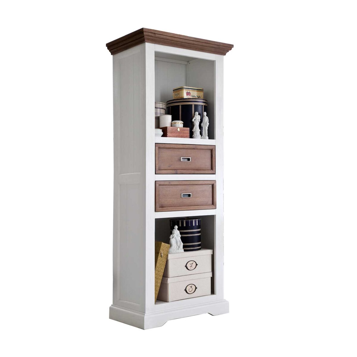 Regal im Landhausstil aus Akazie Massivholz in Weiß / Braun