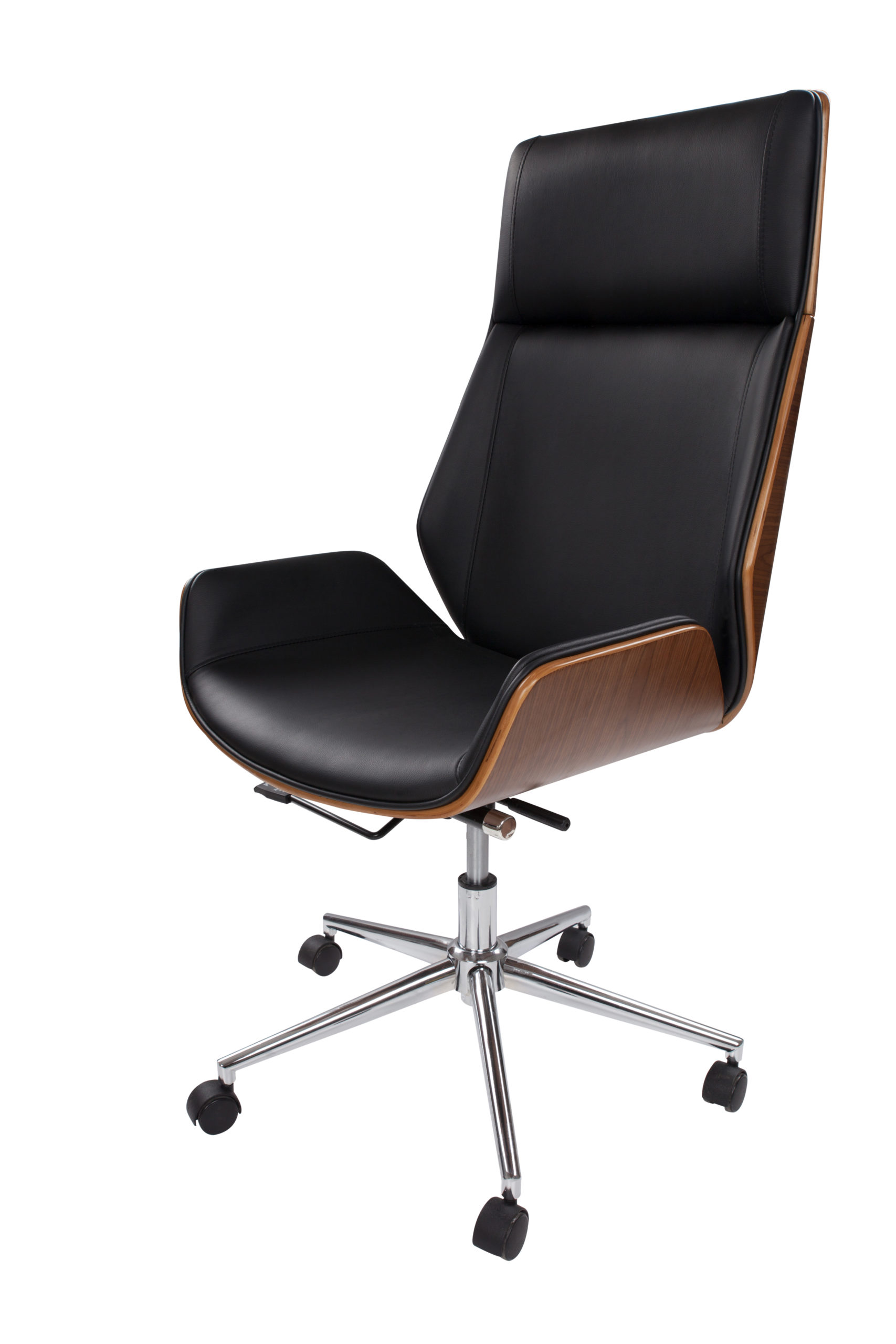 Das weiche Sitzkissen macht den schönen Bürostuhl mit Lederoptik und Holzdekor besonders komfortabel. Durch die variable Sitzhöhe sowie die freie Drehbarkeit bleibt er stets flexibel und ist daher der ideale Schreibtischstuhl. Die hohe Rückenlehne und die Armlehnen dienen als Stütze und verleihen ihm eine elegante Form. Der zeitlose Bürostuhl ist überraschend komfortabel und für jeden Sitztyp geeignet. Er lässt sich perfekt mit vielen Einrichtungsstilen kombinieren und ist zudem besonders hochwertig verarbeitet. Die Lederoptik verleiht jedem Raum einen exklusiven Charme. Dank einfacher Montage und einer beiliegenden Anleitung ist er mit wenigen Handgriffen fertig aufgestellt.