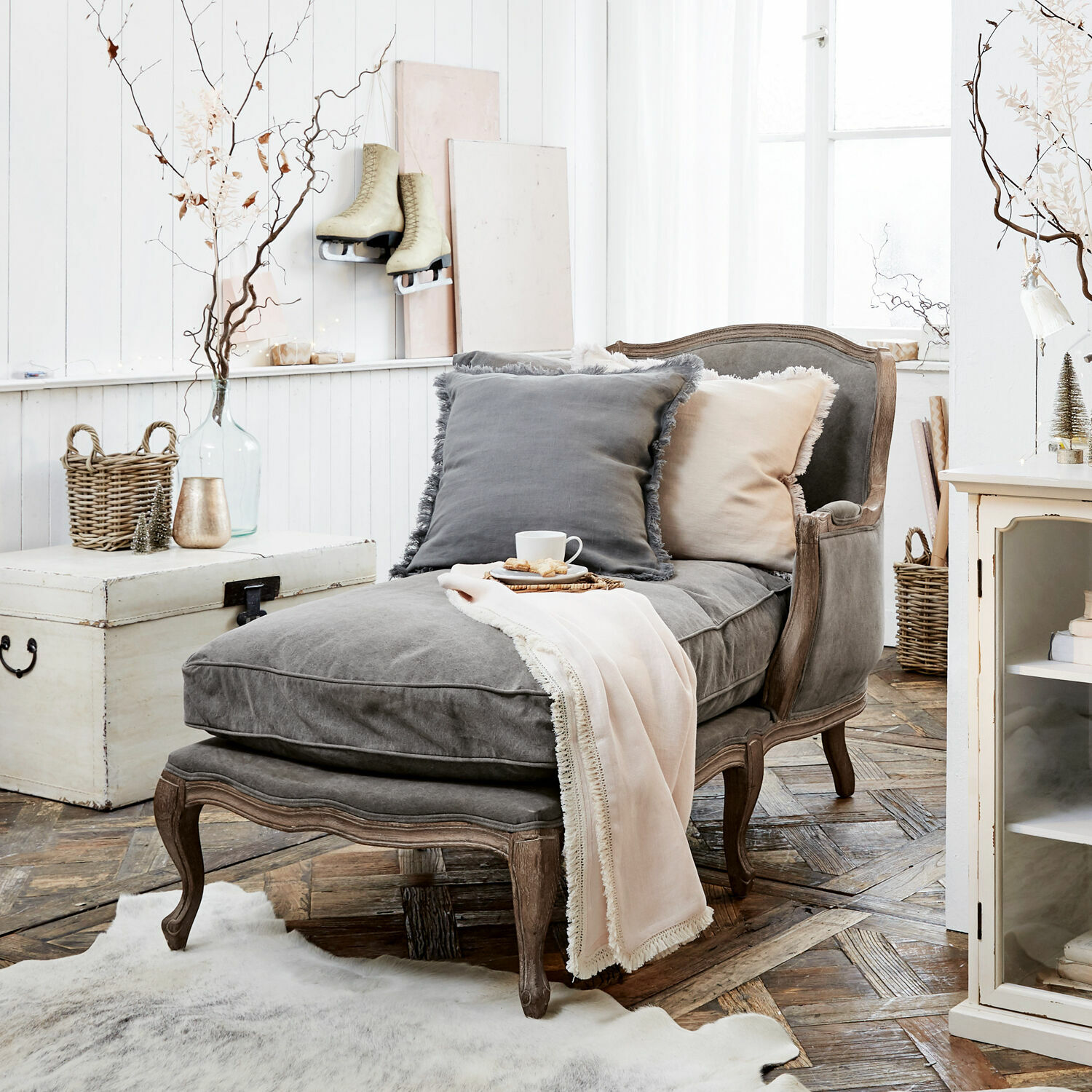 Schon bei seinem Debut im späten 19. Jahrhundert sorgte dieses eindrucksvolle Möbelstück für Furore und die Begeisterung seiner Liebhaber hat bis heute nichts von ihrer Leidenschaft eingebüßt. Umso kostbarer sind die wenigen, nach klassischen Vorbildern und in alter Handwerkstradition gefertigten Chaiselongues, die das glanzvolle Flair vergangener Zeiten wiederauferstehen lassen. Als Chaiselongues wie diese nicht nur im aristokratischen Ambiente, sondern auch in großbürgerlichen Salons zum Entspannen einluden. Auch diese Chaiselongue braucht nicht lange mit ihrer eleganten Linienführung und den weichen Polstern zu locken – nur allzu gerne werden Sie sich am Feierabend darauf niederlassen und den Alltag vergessen. Fühlen Sie den Komfort der hochwertigen Polsterung wie auch der weichen Kissen, die mit echten Entenfedern gefüllt sind. Dank des festen Kiels entfalten sich Entenfedern nach einem Positionswechsel oder einer Gewichtsverlagerung wieder und bleiben – im Gegensatz zu Daunen, die schnell plattgedrückt werden – angenehm elastisch. Als Bezugsstoff wurde reine Baumwolle gewählt, damit der Aufenthalt auf der Chaiselongue auch mit bloßer Haut ein vollendeter Genuss ist. Lassen Sie Ihre Augen aber auch über das elegant geschwungene, hohe Rückenteil gleiten, über die gepolsterten Armlehnen bis zu den liebevoll von Hand bearbeiteten Füßen. So zierlich dieses Sitz-Liegemöbel auch wirkt, verfügt es dank des Gestells aus massivem Eichenholz doch über eine enorme Stabilität, so dass auch einem Kuschelvergnügen zu zweit nichts im Wege steht.