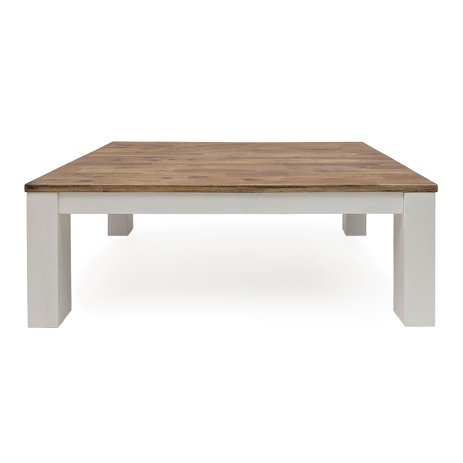 Couchtisch im Landhausstil aus Akazie Massivholz in Weiß / Braun