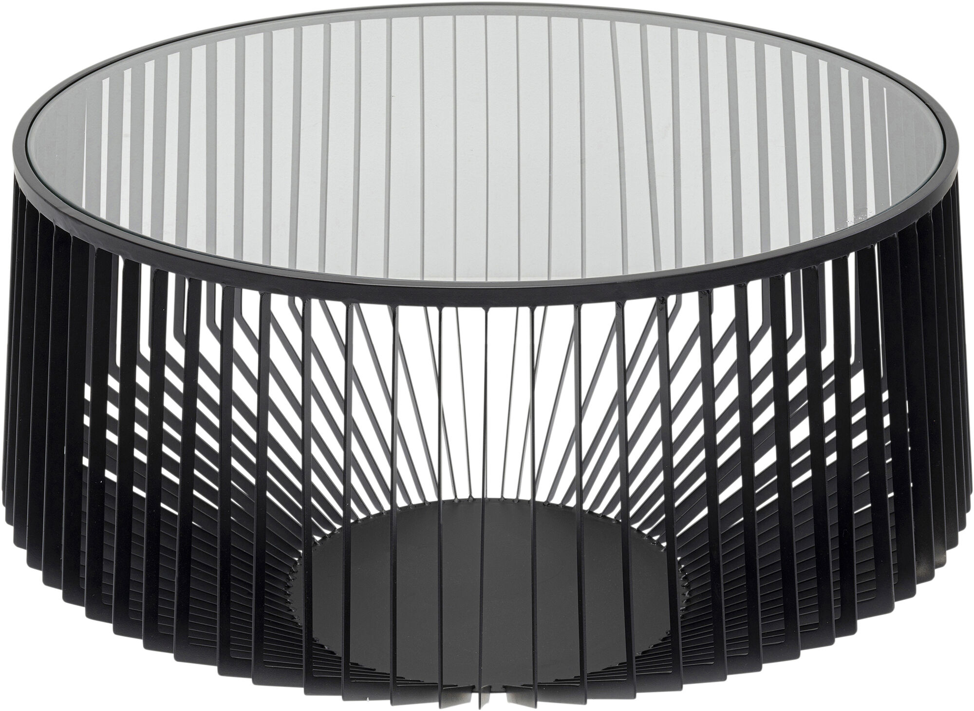 Mit seinem grafischen Gestell verkörpert der schwarze Couchtisch den zeitlos modernen Wohnstil. Sein klares Design verleiht jedem Wohnraum Charakter und lässt sich einfach zu jedem Sessel und Sofa stellen. Die Kombination aus dem schwarzem Metallkörper mit der transparenten Glasplatte schenkt dem runden Wohnzimmer-Tisch oticshe Leichtigkeit. Dieses Designer-Möbel von KARE wirkt als Statement-Stück, das ästhetisch ansprechend ist und gleichzeitig alle Funktionen eines Beistelltisches perfekt erfüllt. Material: (Gestell: Stahl pulverbeschichtet, Tischplatte: Glas Sicherheitsglas ESG klar)