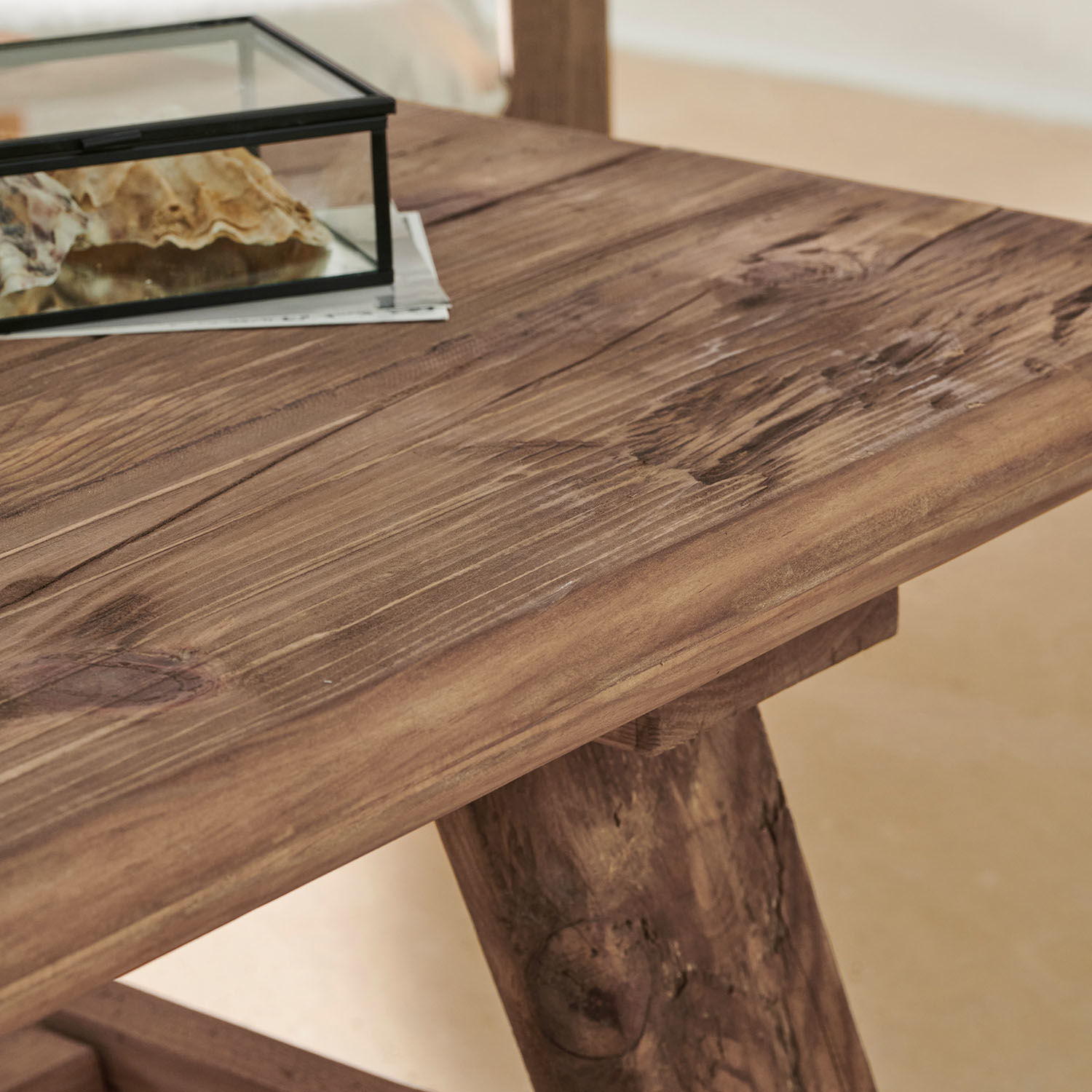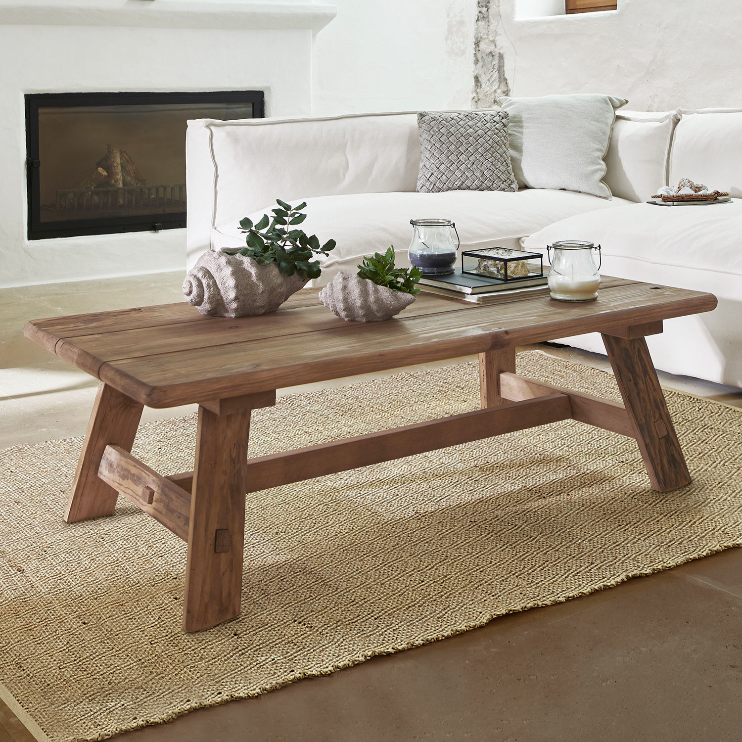 Natürlich, minimalistisch, essenziell: Dieser rustikale Couchtisch besteht aus wiederaufbereitetem Kiefernholz. Durch seinen Look mit natürlichen Holzmaserungen fügt er sich insbesondere in ein Wohnambiente perfekt ein, das seinen Charakter durch Holzmöbel und eine zurückhaltende Ausrichtung aufs Wesentliche und Natürliche gewinnt. Vor allem in großzügigen Landhäusern, zum Beispiel auf Steinböden oder im optischen Ensemble mit einem offenen Kamin, kommt der Tisch besonders gut zur Geltung. Aber auch in kleineren Räumen, die einfach eine Atmosphäre unaufgeregter Schlichtheit eröffnen möchten, wird das schöne Möbelstück am richtigen Fleck sein und durch seine Einfachheit, Nachhaltigkeit und wunderschöne Holzoptik ein Zeichen setzen. Definitiv ein Tisch, mit dem Sie über Jahre hinweg viel Freude haben werden.